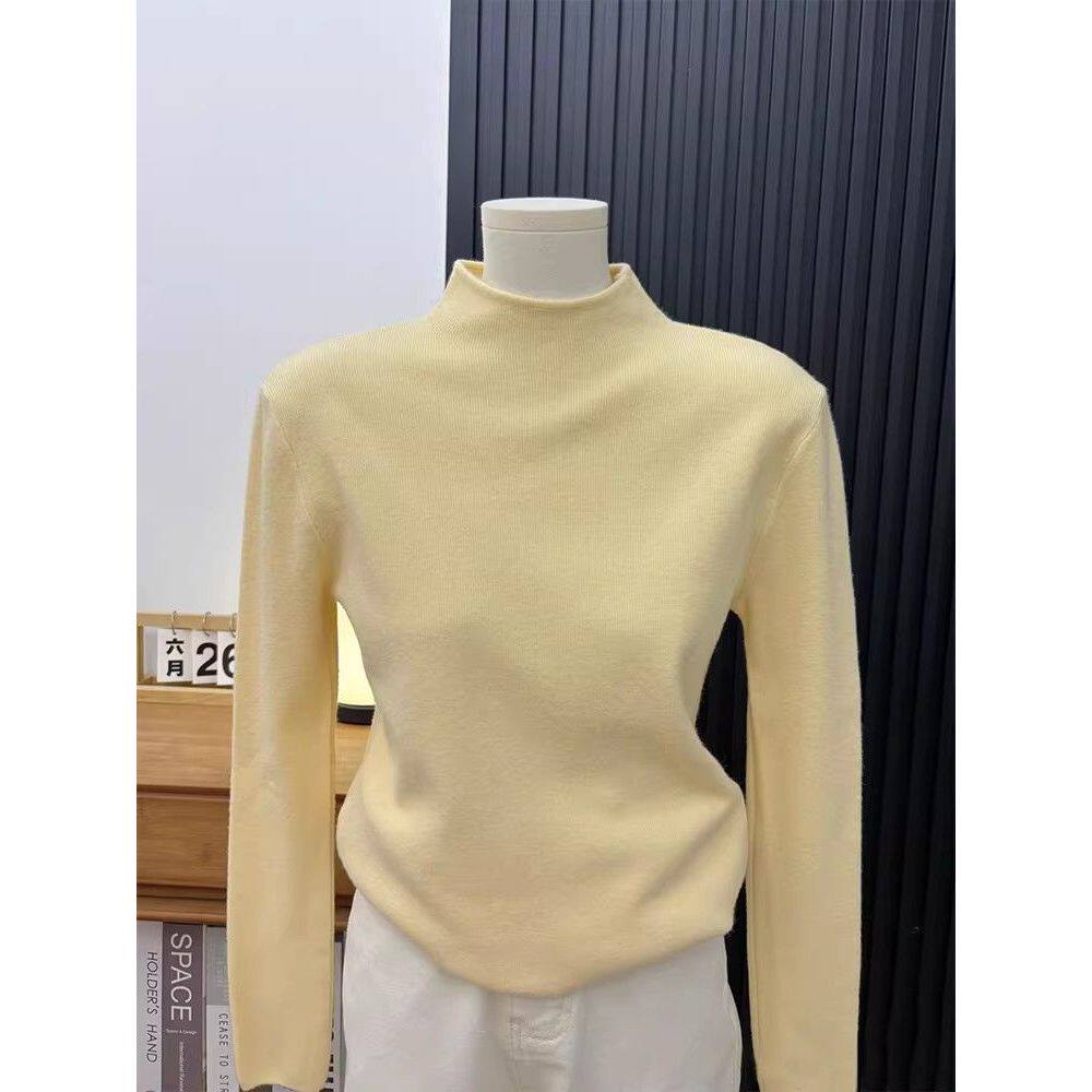 奶黄色半高领打底衫女今年流行配大衣春秋冬内搭毛衣针织上衣洋气