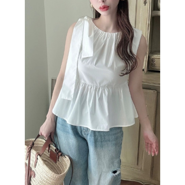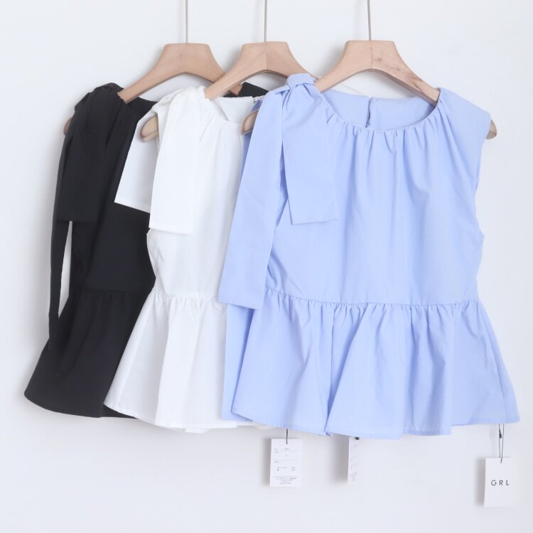 D18083日单新款甜美日系GL蝴蝶结装饰圆领套头微宽松女无袖衬衫