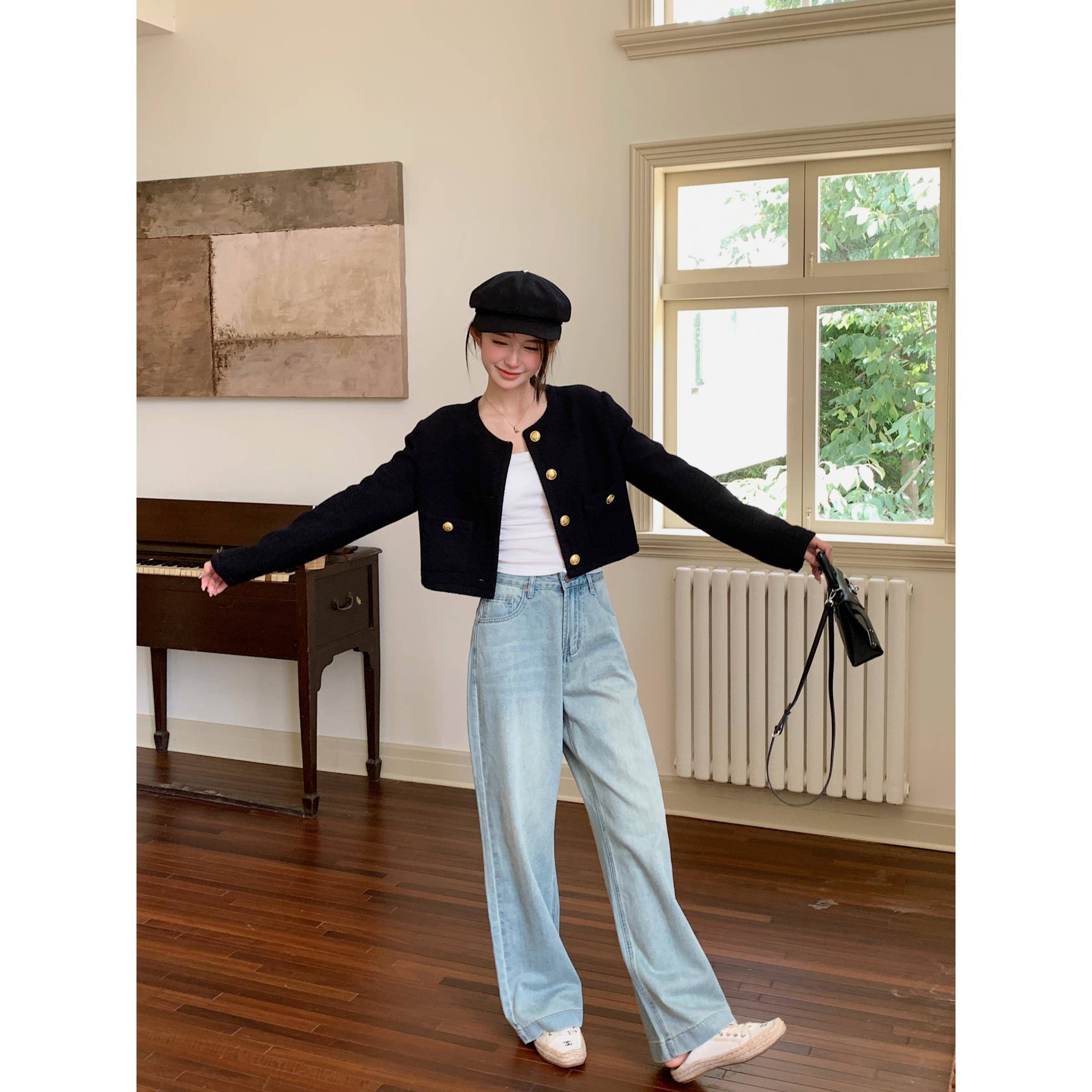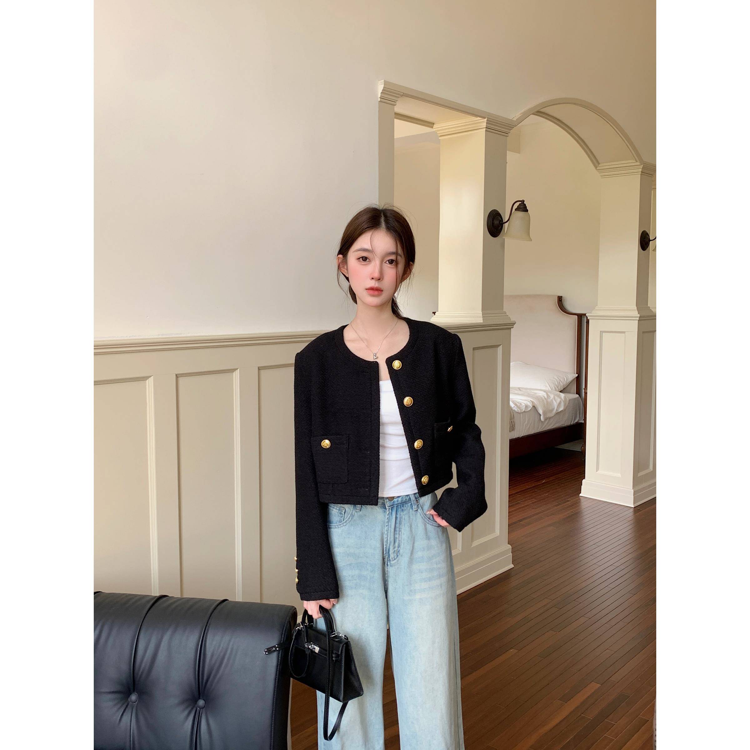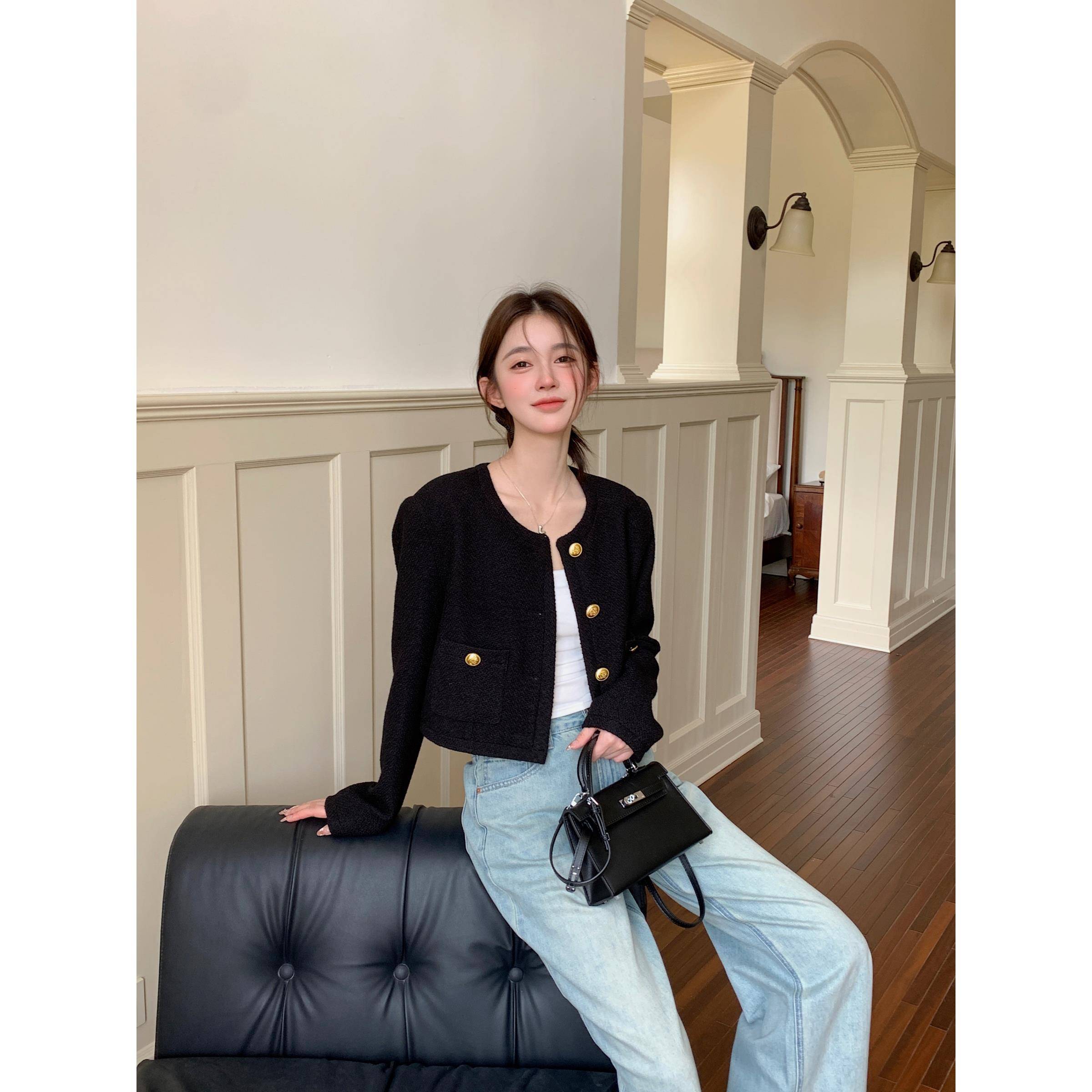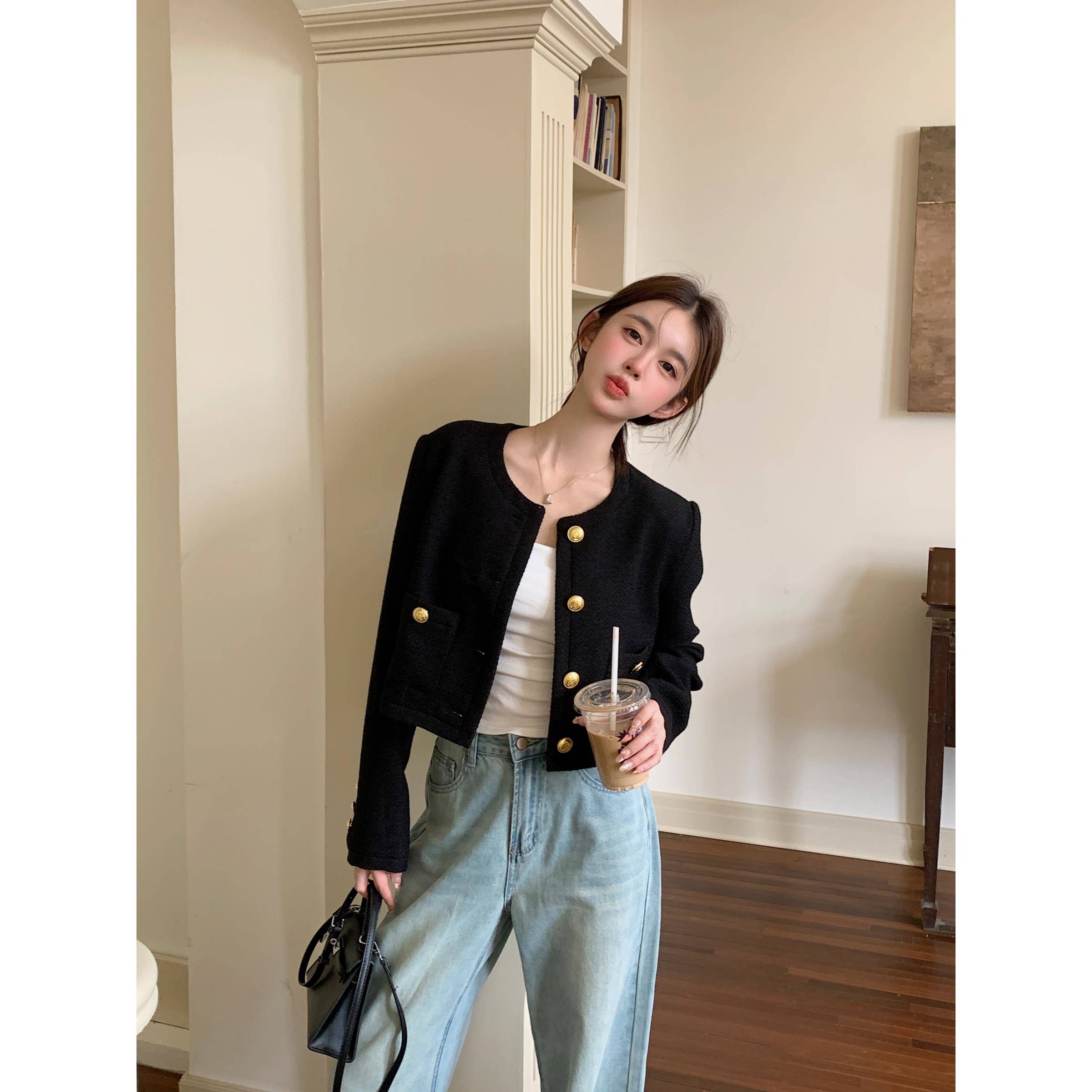GAZ线上商店新款黑色小香风短外套秋冬洋气韩系短款羊毛上衣女