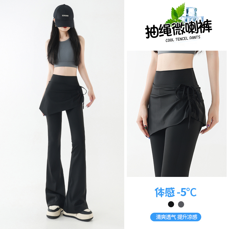 瑜伽裤女假两件裤裙高腰提臀紧身防走光喇叭裤普拉提运 动健身裤