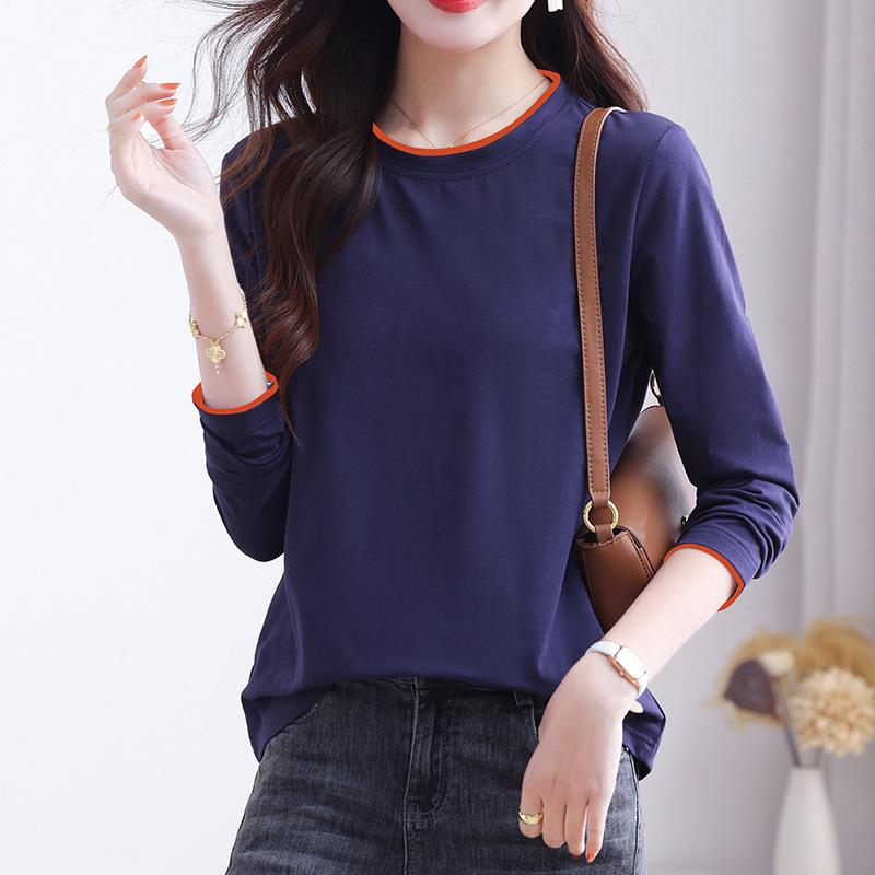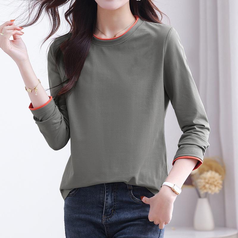 纯棉长袖t恤女士打底衫秋冬内搭可外穿2025新款时尚洋气正肩上衣