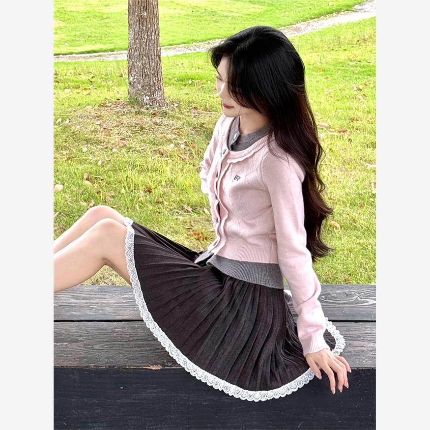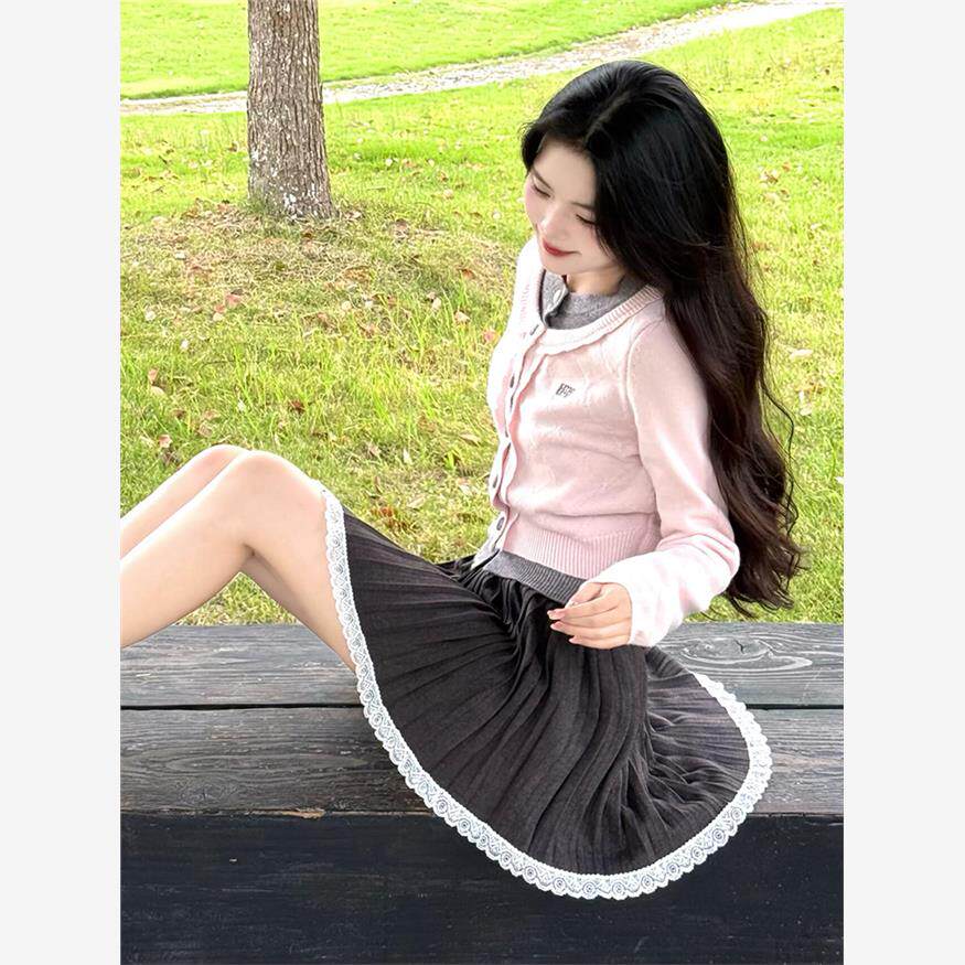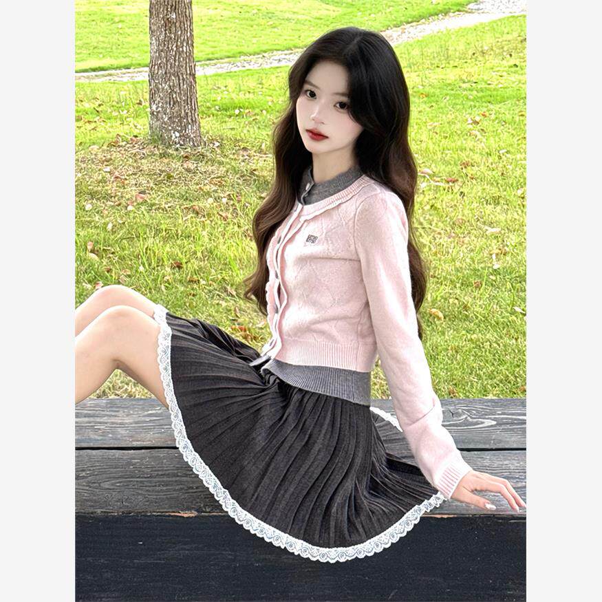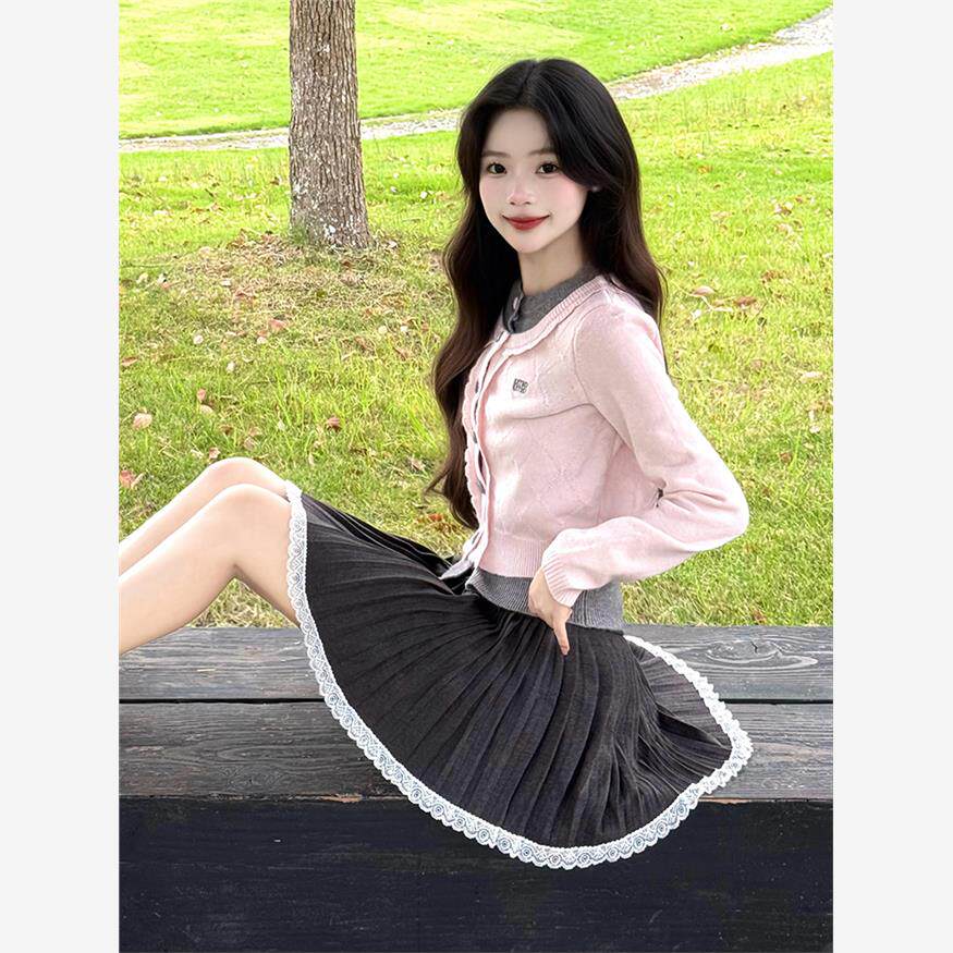 早秋穿搭一整套2025韩系千金甜美少女风小个子绝美针织毛衣套装裙