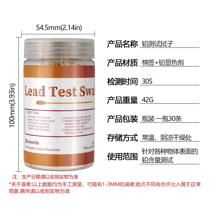 铅测试物体表面涂料 实验室家用检测铅式子 化妆品铅含量检测拭子