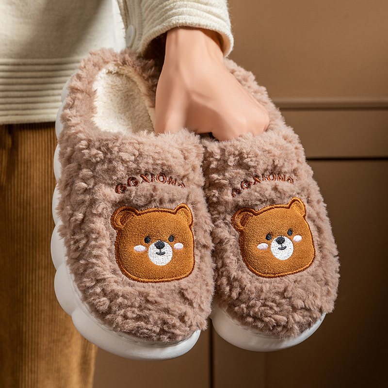 新品福利小熊毛绒棉拖鞋女秋冬季防滑保暖居家用舒适厚底卡通棉拖
