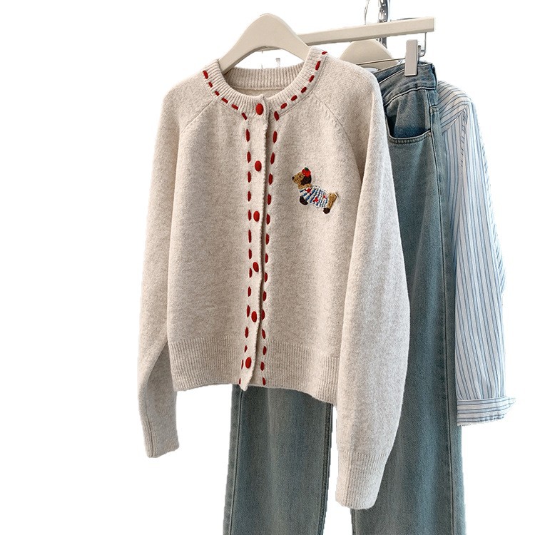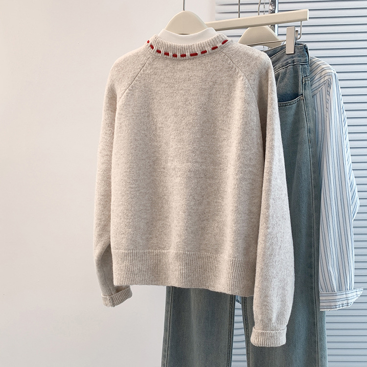 2025软糯加厚圆领毛衣外套女秋季新款设计感外穿慵懒针织开衫上衣