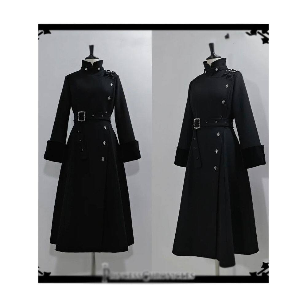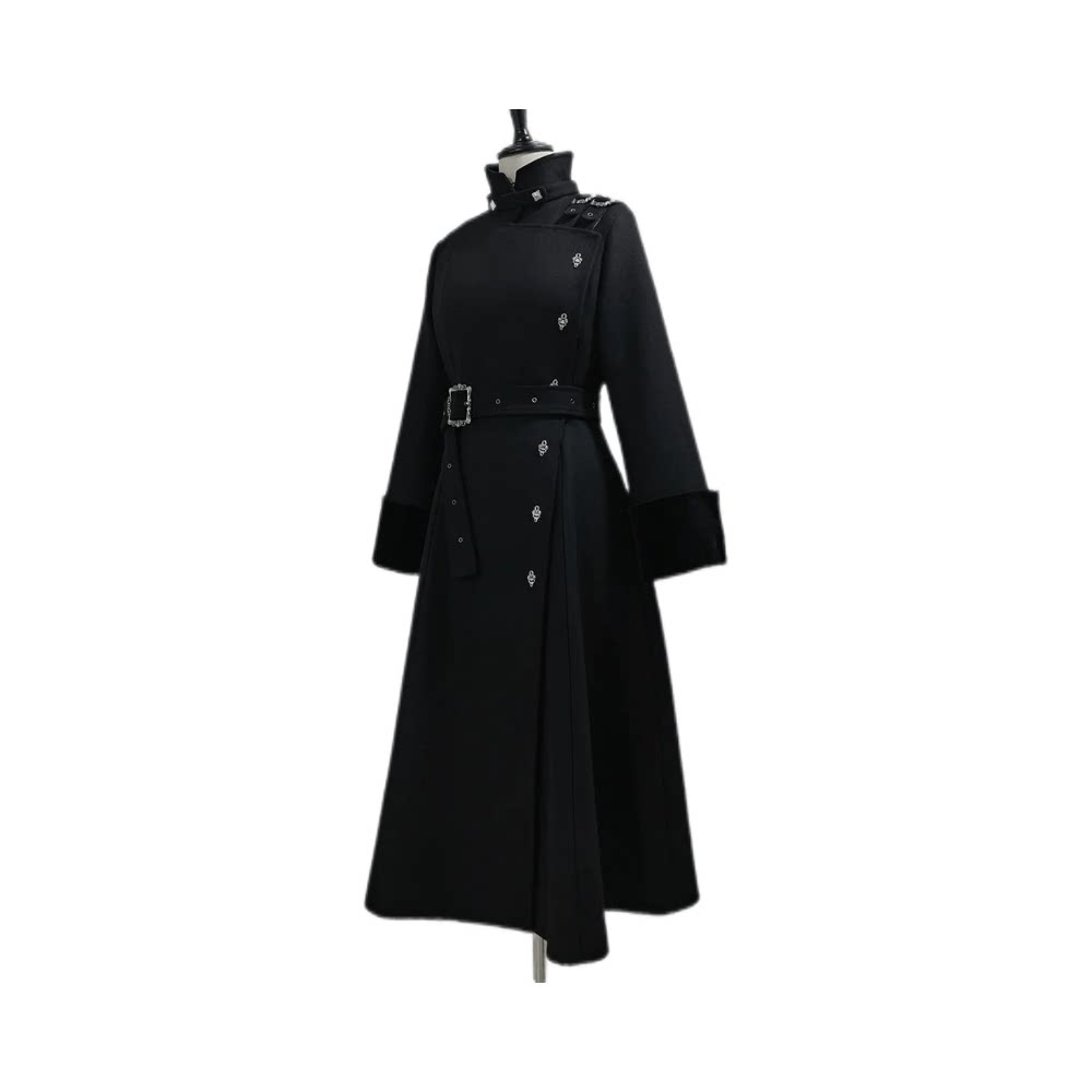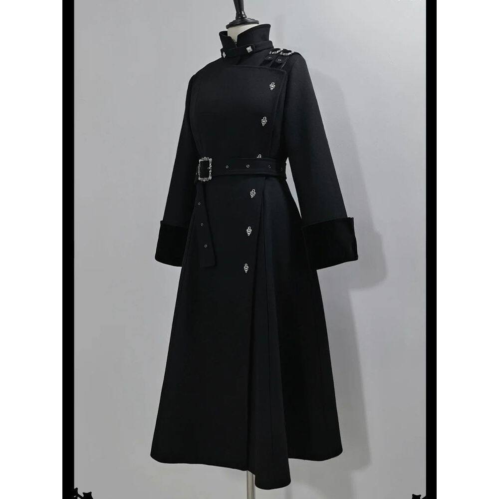 【破势出击】2025年冬季新款哥特气质绑带收腰显瘦中长款毛呢外套