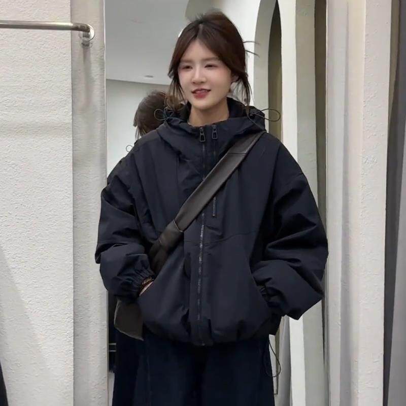 短款夹棉加厚连帽冲锋衣外套女秋冬新款2025爆款百搭小个子棉服潮