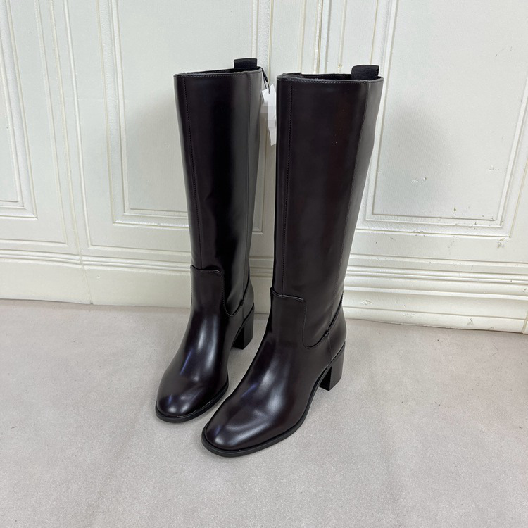 外贸原单女靴时尚新款提拉式设计圆头纯色粗高跟套筒时装长筒靴