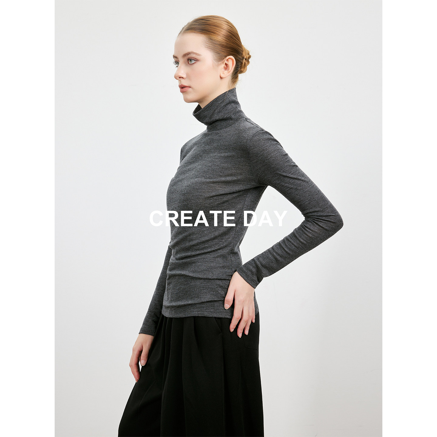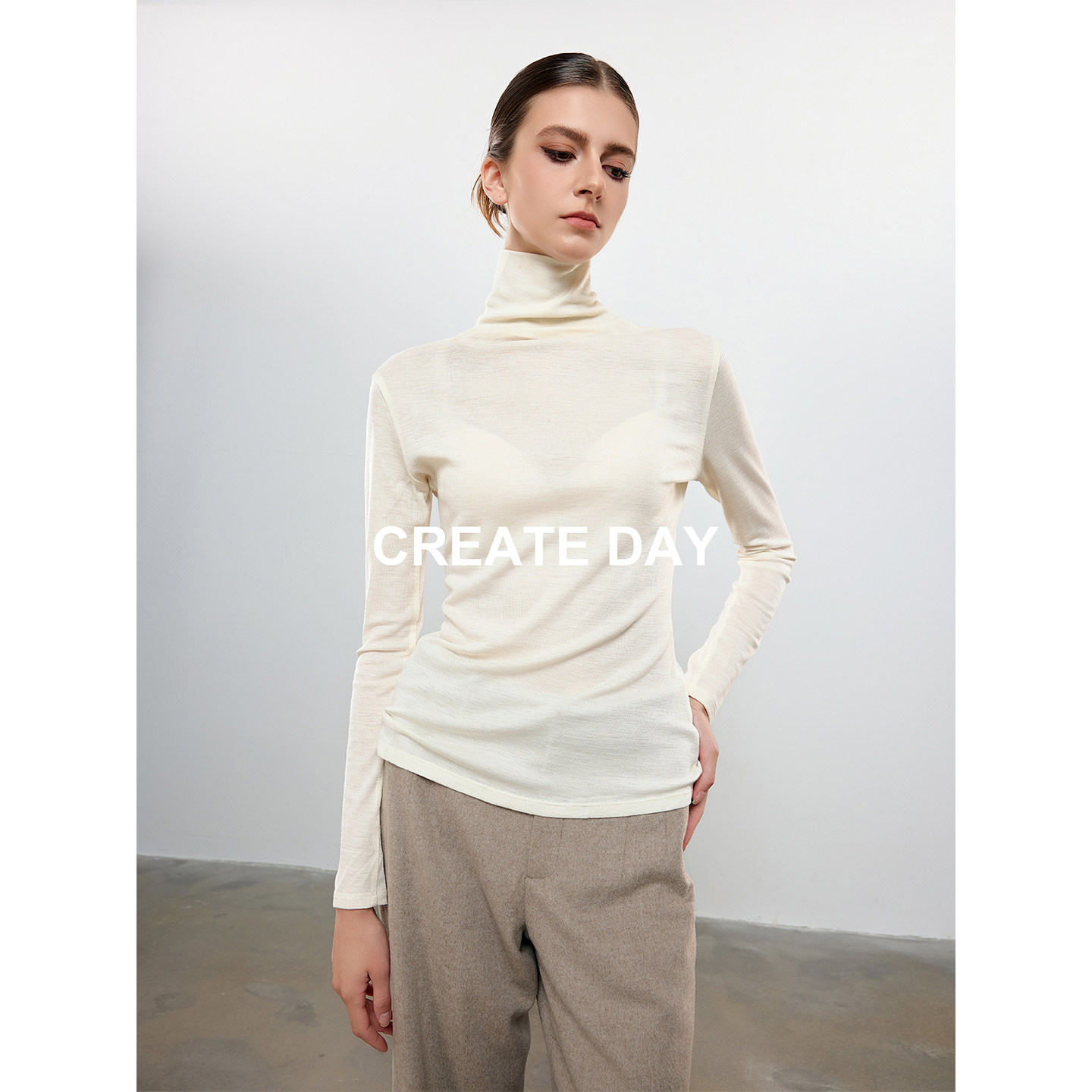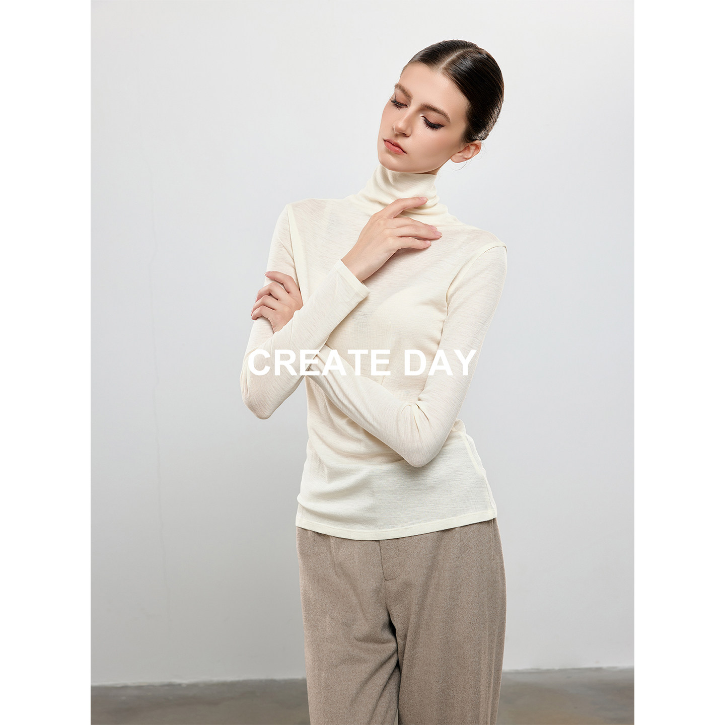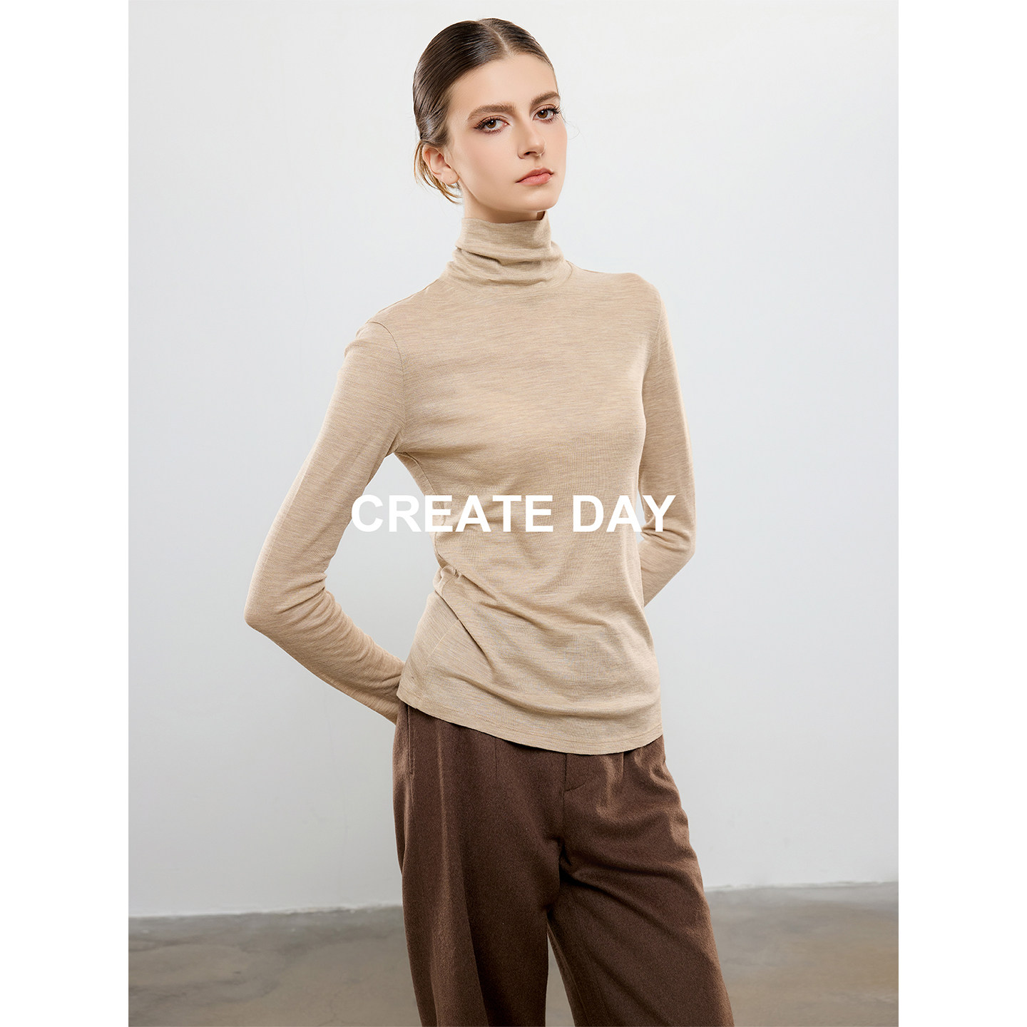 CREATE DAY 90%绵羊毛长袖针织衫秋冬山羊绒桑蚕丝高领打底衫上衣
