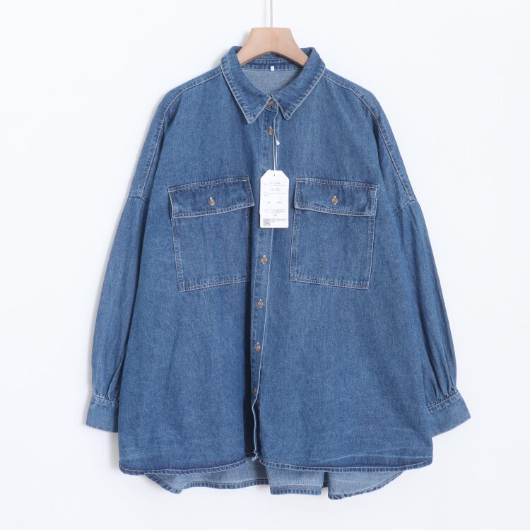首页> 女装> D06047日单新款单排扣宽松女简洁通勤休闲水洗纯棉中长款长袖衬衫