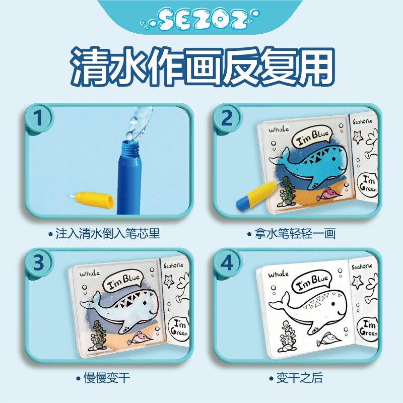 SEZOZ神奇水画本儿童清水涂画反复使用涂鸦本绘画本儿童画图本
