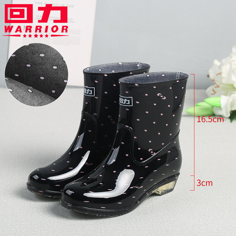 回力女款雨鞋女士中筒加绒雨靴防滑防水水鞋短筒胶鞋成人水靴套鞋