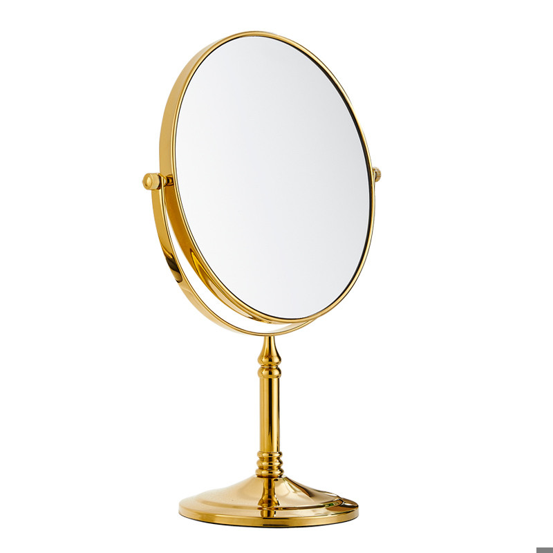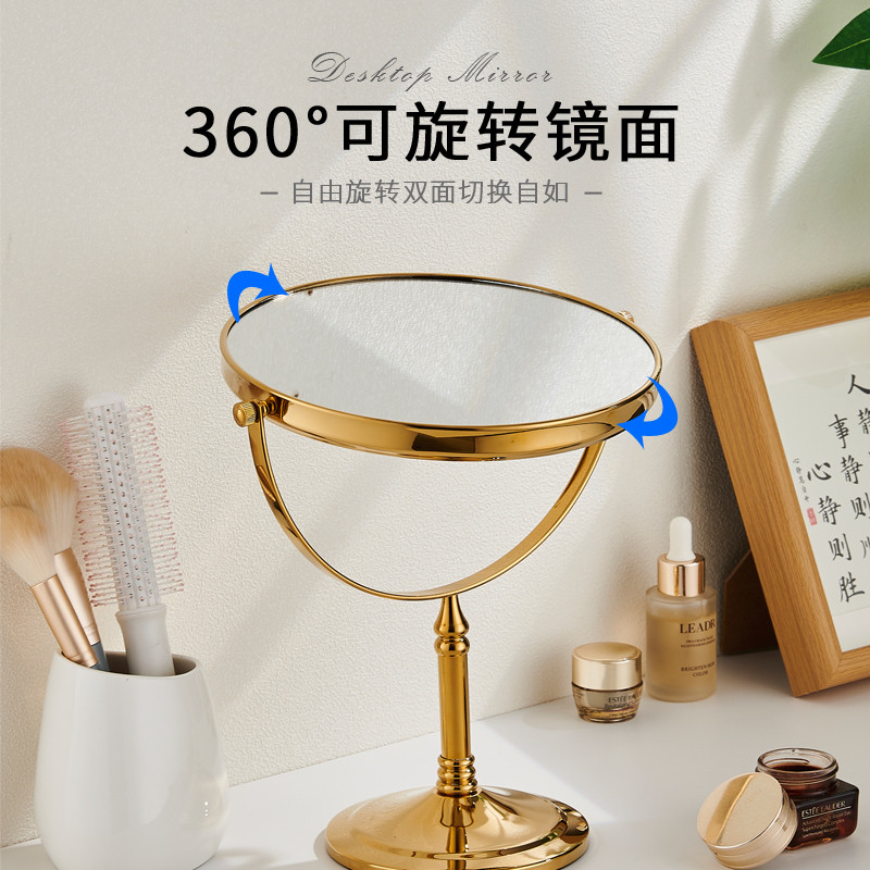 台式化妆镜欧式金色双面梳妆立式结婚公主镜铜放大移动美容镜圆形