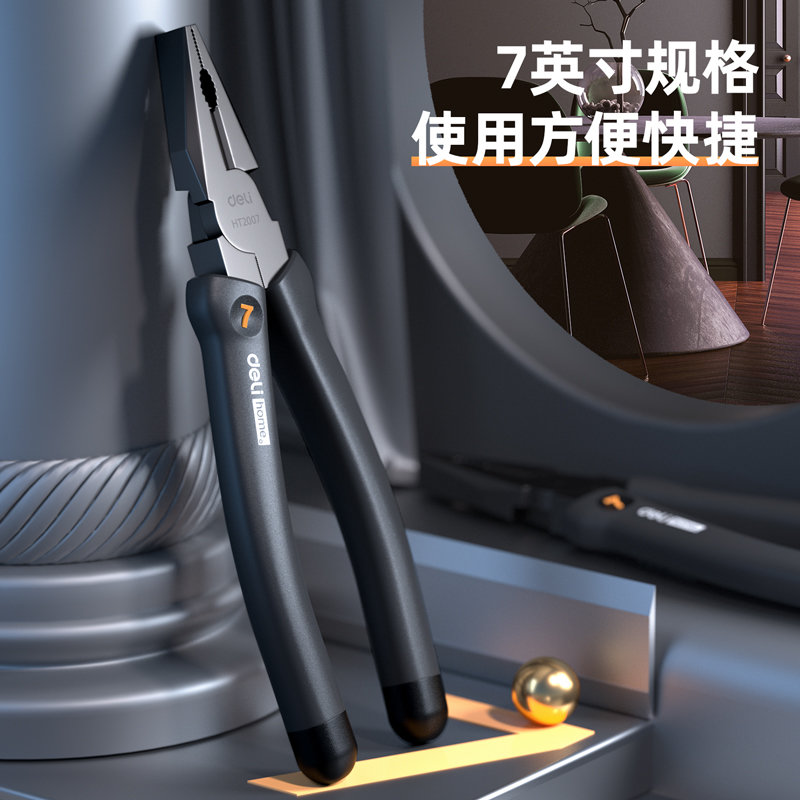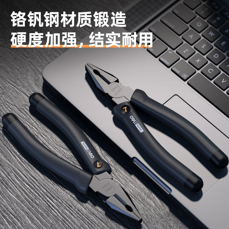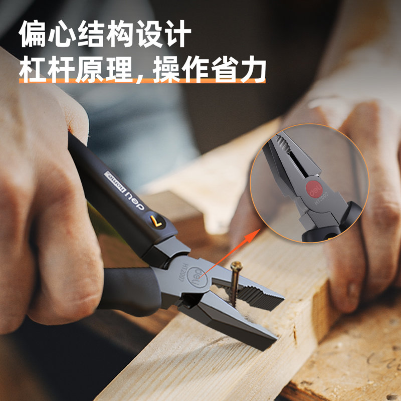 得力老虎钳钢丝钳工业级平口钳多功能省力夹持剪切电工用压线钳子