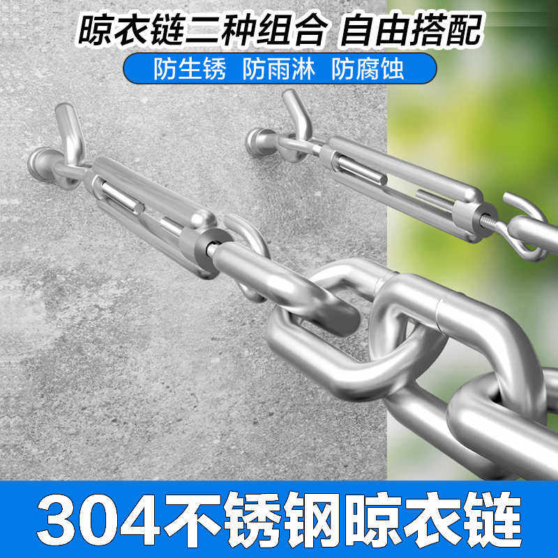 不锈钢晾衣绳铁链室内阳台晒衣服绳子室外凉衣拉紧绳打孔户外链条