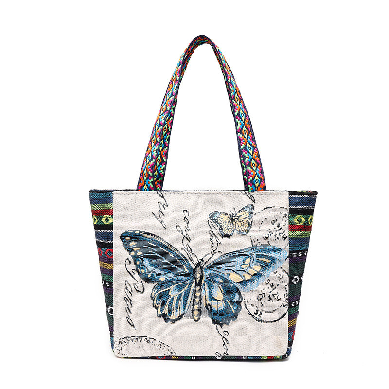 单肩包包女民族风帆布包新款卡通质感耐用高级绣花手提小方包新款