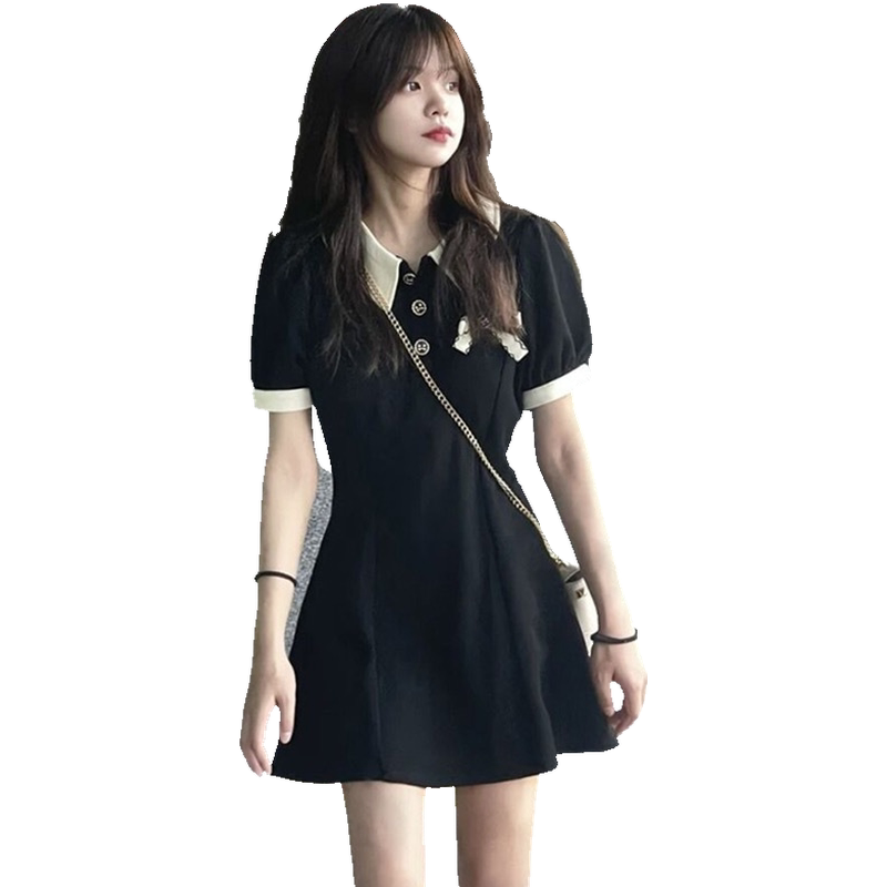 小黑裙高级感p2025女撞色休闲显瘦olo夏季赫本小个子风连衣裙新款