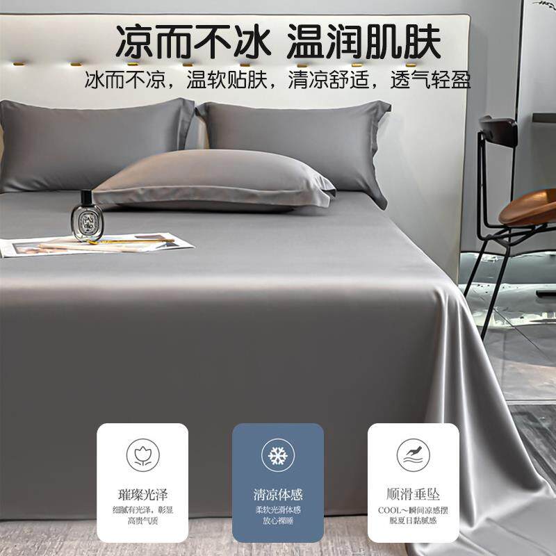 夏季天丝床单单件纯色单双人宿舍冰丝裸睡被套凉感被单枕套三件套