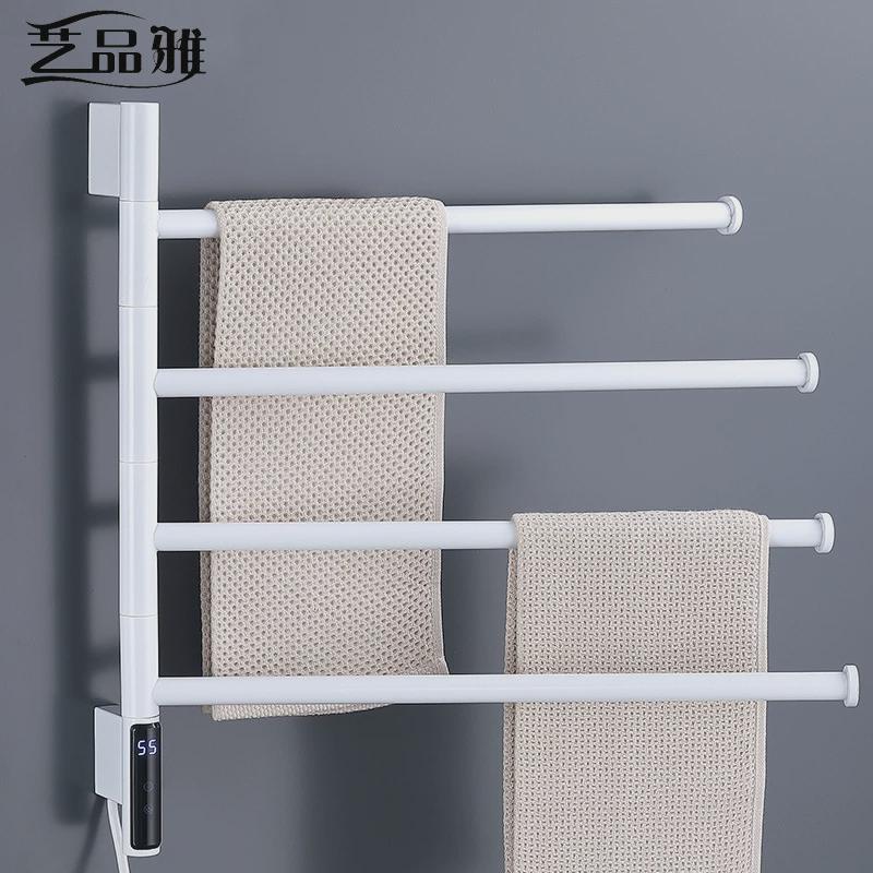 7yx批发简约电热毛巾架卫生间可旋转白色浴室加热烘干浴巾架新款