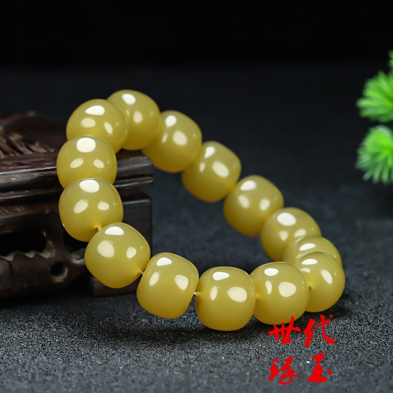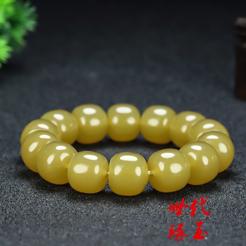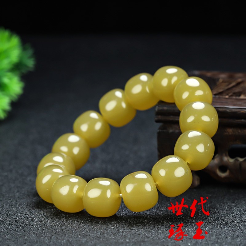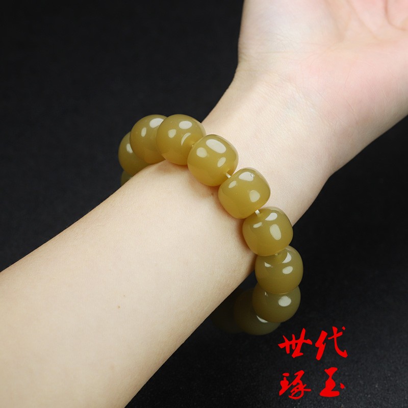 和田玉糖玉手串米黄玉老型珠男女款手链新疆玉黄玉细腻油润手串