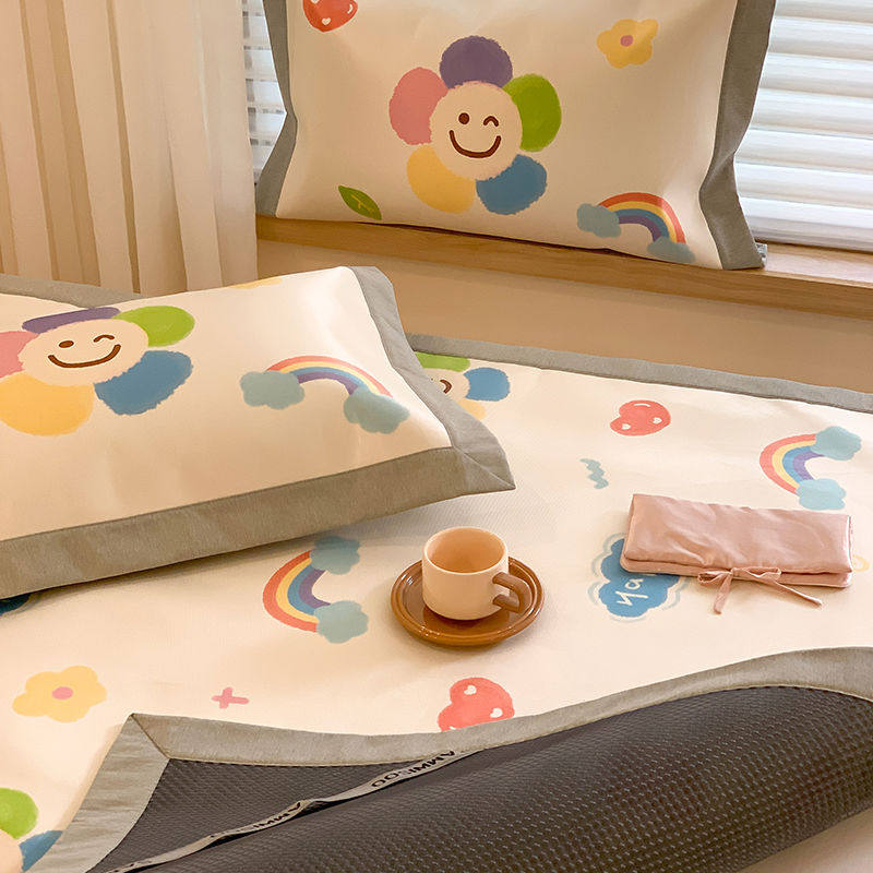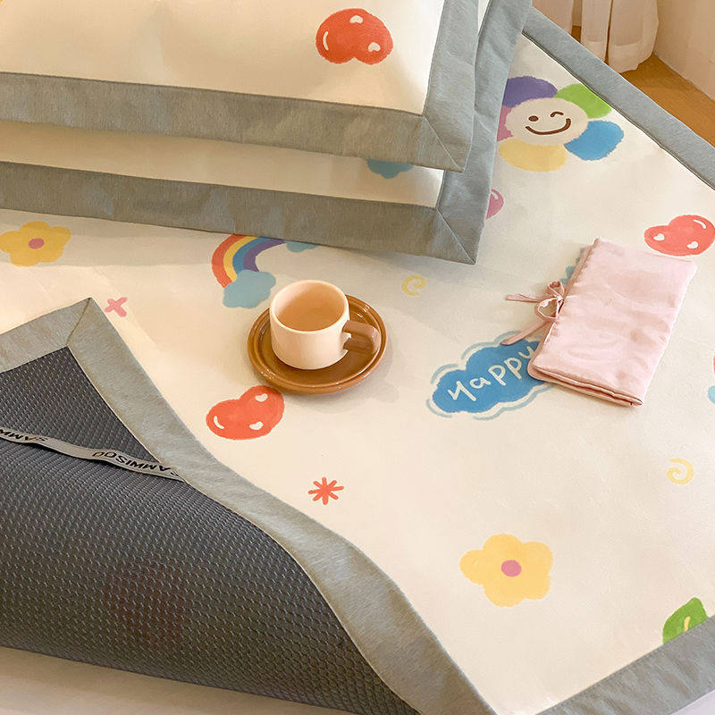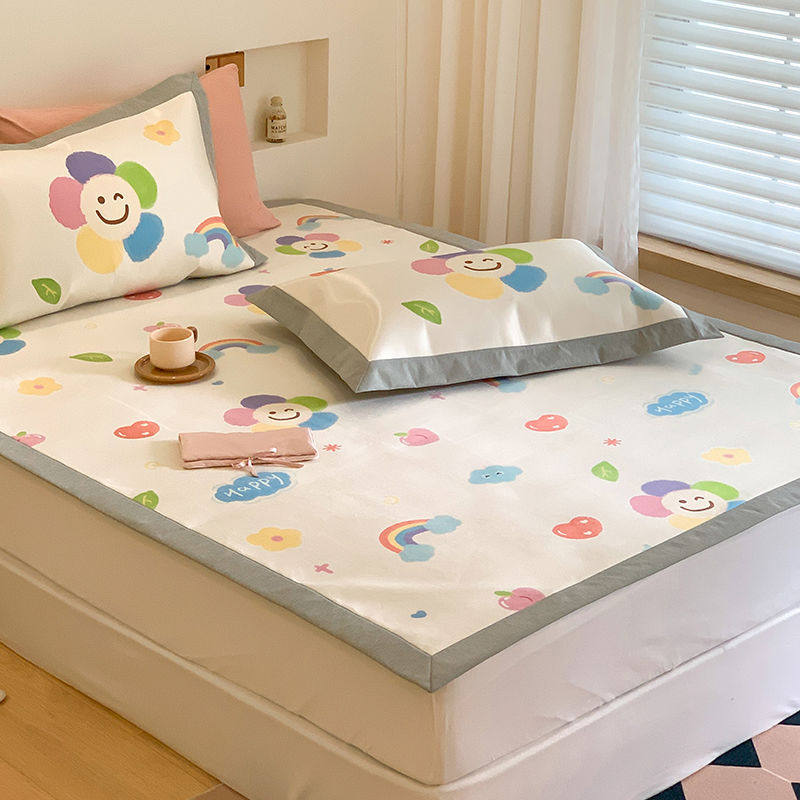 罗兰家纺A类1200D卡通抗菌冰丝凉席套件夏季可洗防滑凉感空调
