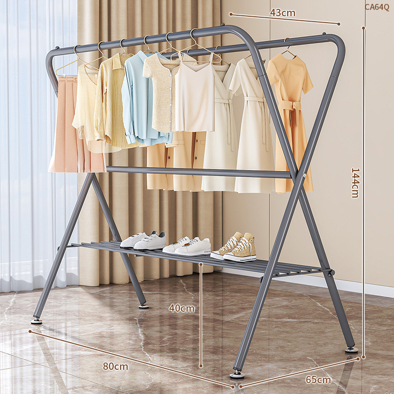晾衣架家用阳台晾被X型碳钢折叠衣帽架室内卧室落地挂晒衣服架子