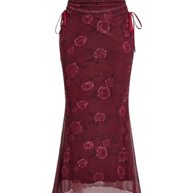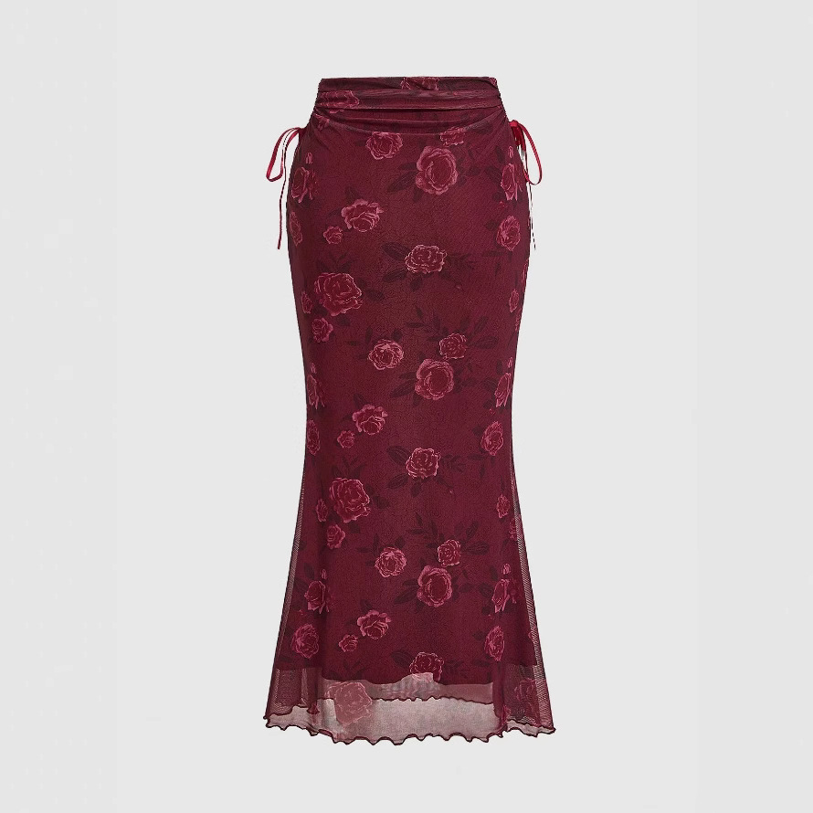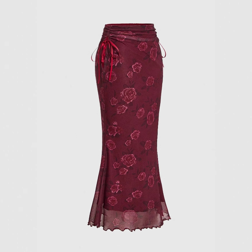 亚马逊欧美夏季中国风3D立体数码印花蝴蝶结高腰鱼尾半身裙