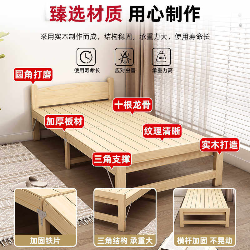 折叠床实木1.2m单人床办公室午休床家用午睡成人木床租房简易
