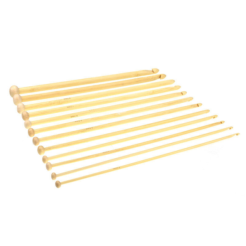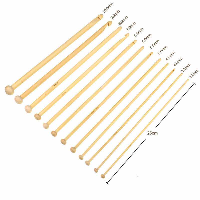 12Pcs/Set 25cm Bamboo Handle Crochet Hook Knit Craft Knittin