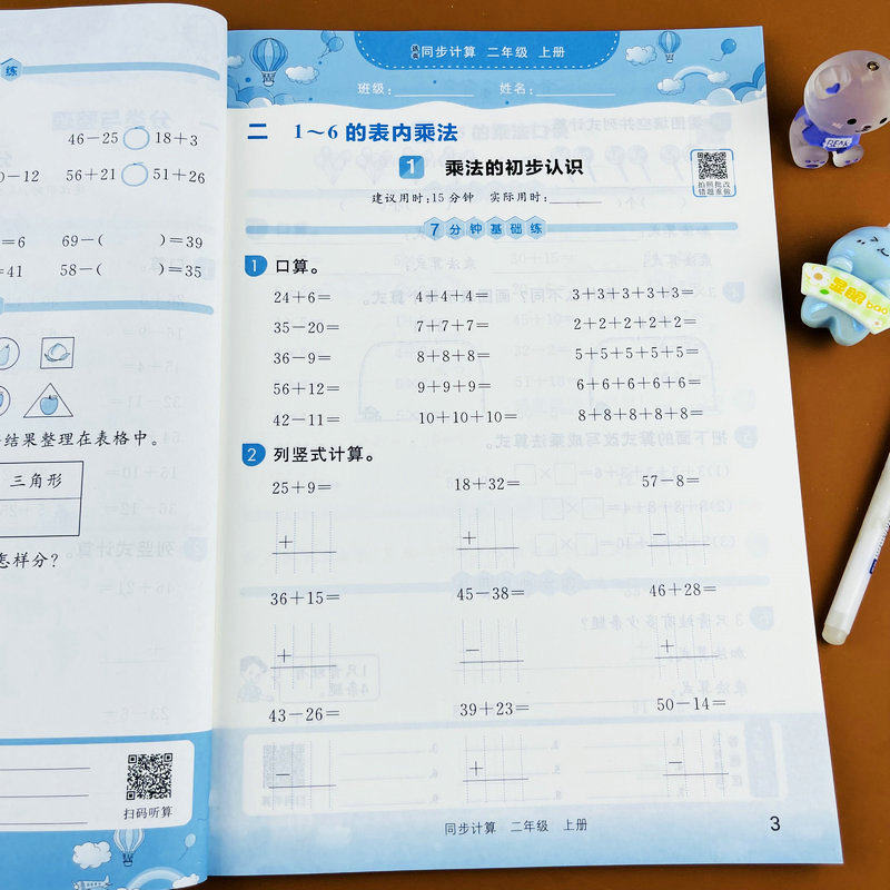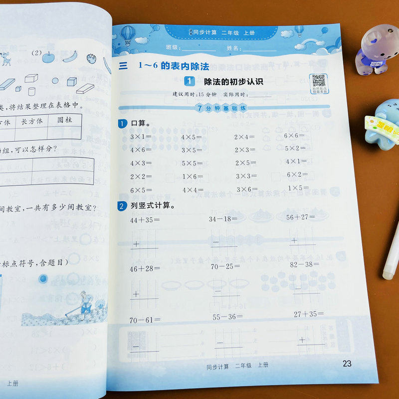 2025新版二年级上册小学数学同步计算人教版课本同步练习册口算竖式应用题全题型表内乘法表内除法厘米和米乘加乘减乘法口诀