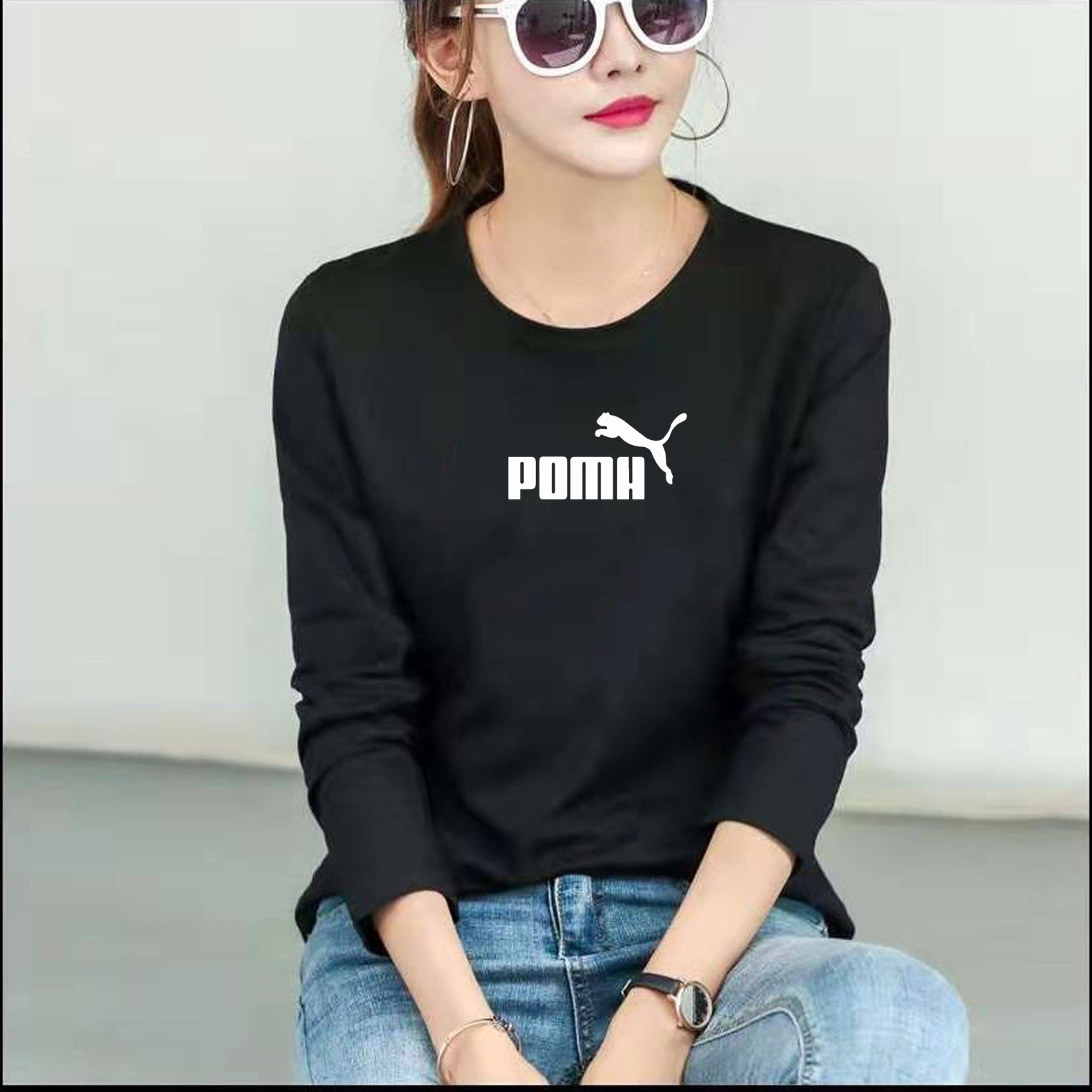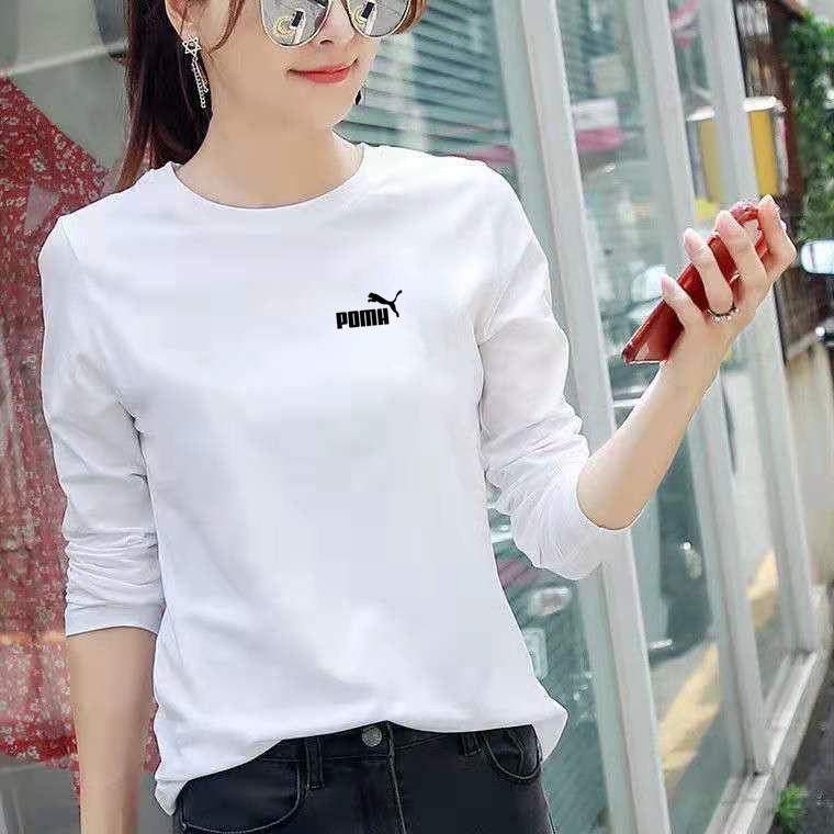 BM白色宽松长袖t恤女春秋圆领纯棉2025新款韩版百搭正肩显瘦上衣