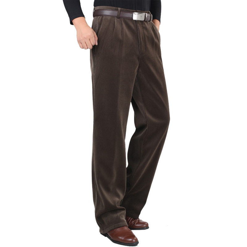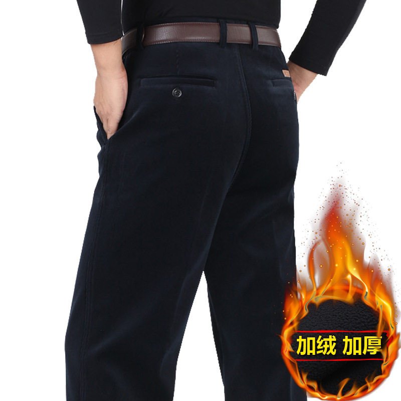 高端品质冬季中年男士条绒加绒加厚款腰弹力灯芯绒双褶休闲长裤