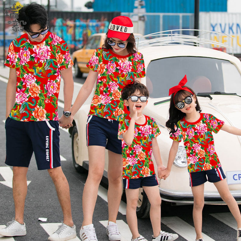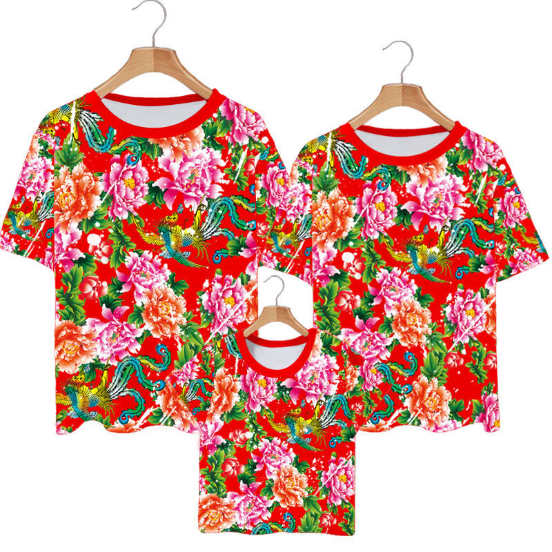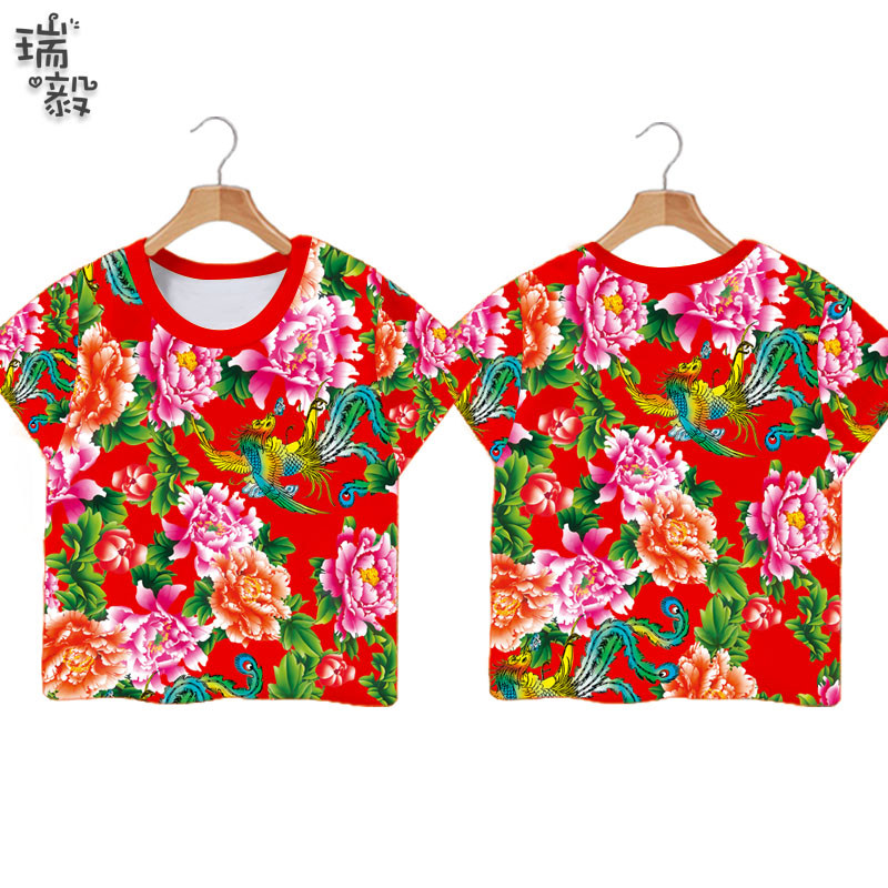 东北大花痞帅抖音网红童款速干亲子装短袖T恤衫男女个性旅游半袖