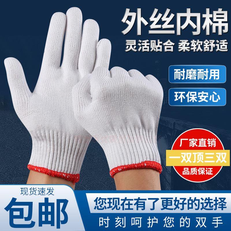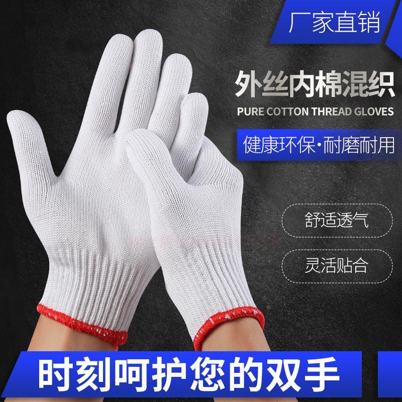 白棉纱棉线手套劳保耐磨防滑尼龙加厚透气工作耐用劳动男工地干活