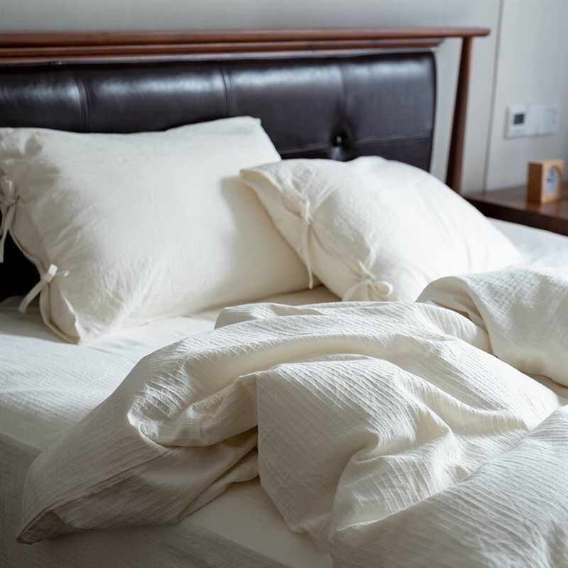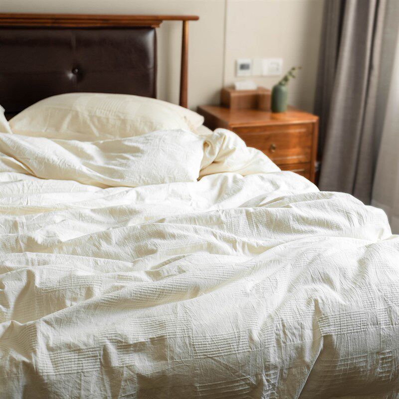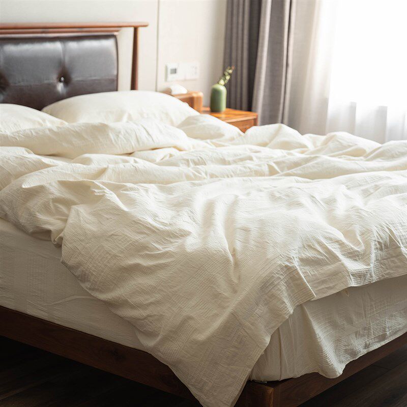 仔普北欧 原生态无漂染全棉白色床上四件套纯棉被套床单1.5/1.8米