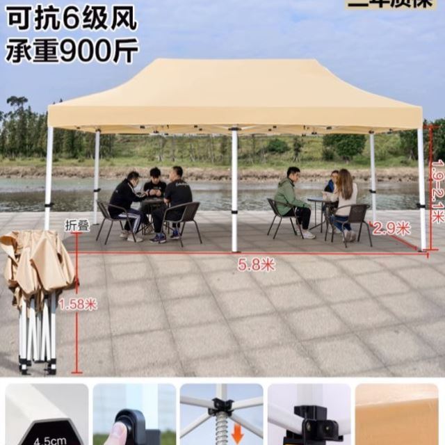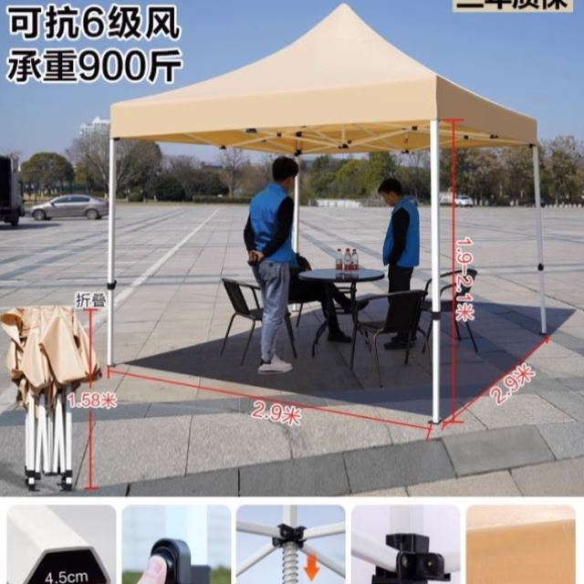 U户外摆摊用帐篷夜市四脚伞室外卡其色伸缩雨棚遮阳棚四角防雨