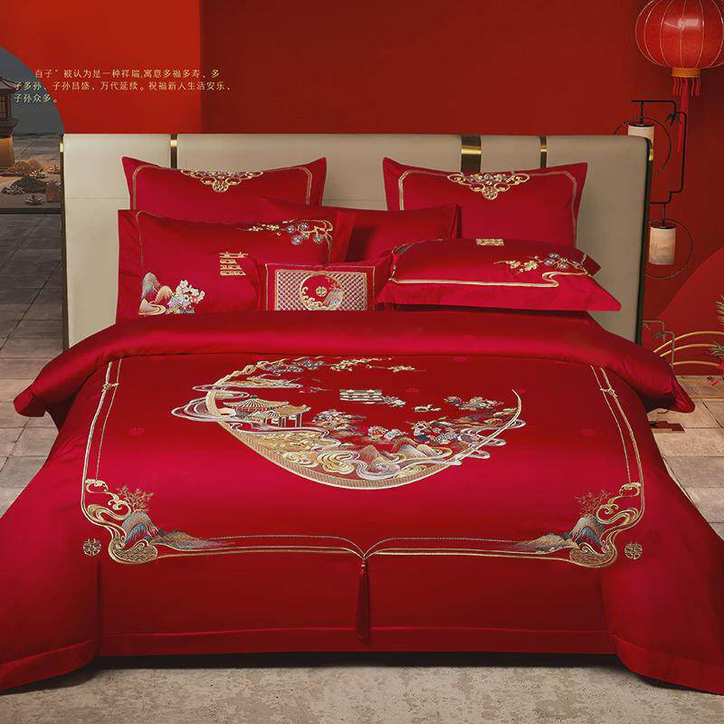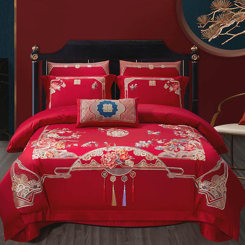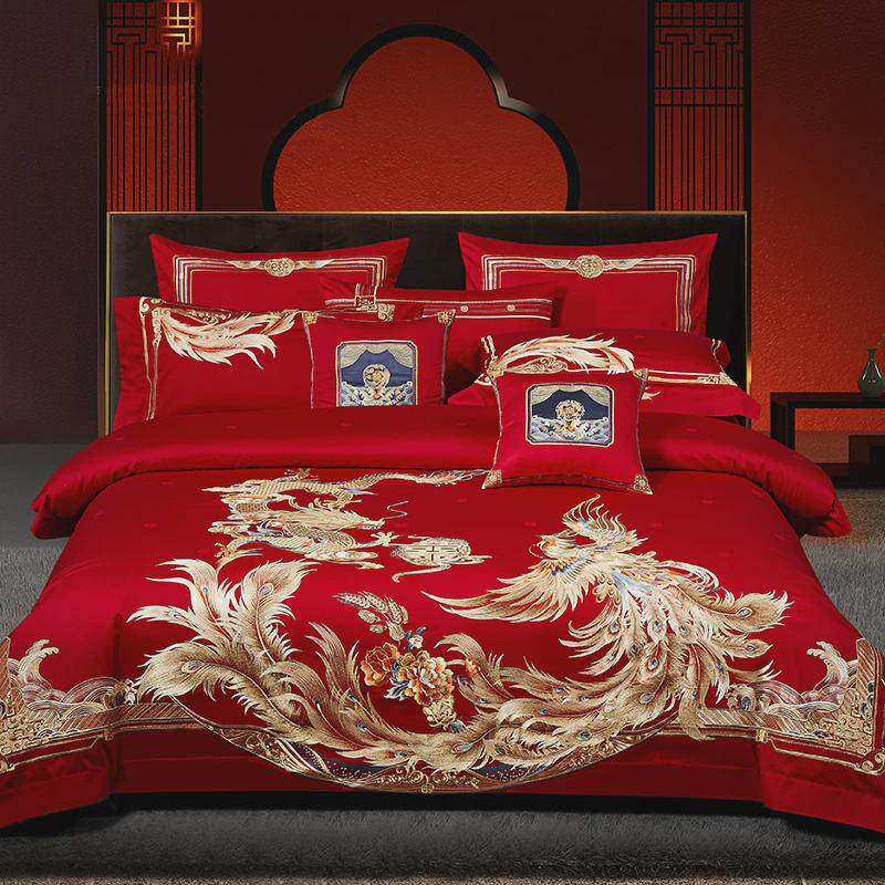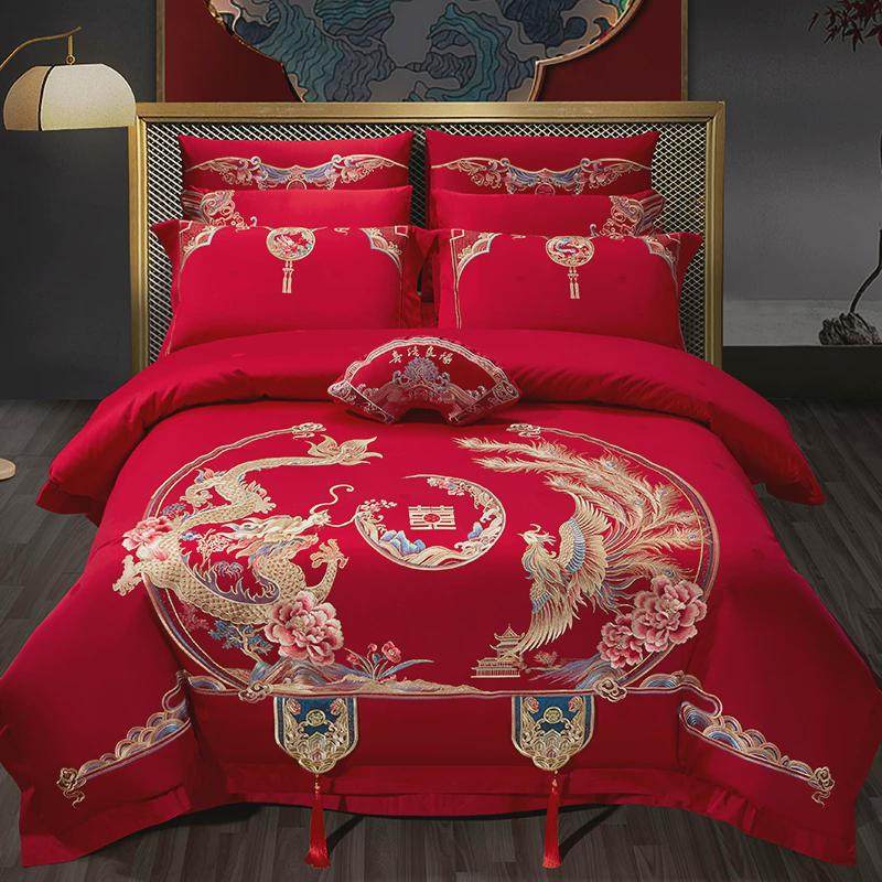 i9at140新婚婚庆大红色龙凤刺绣支四六十件套结婚嫁床上用品