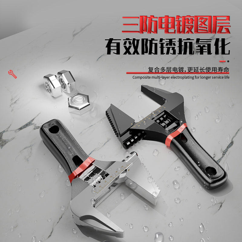 大开口活动扳手万能短柄活口板手多功能狭小空间卫浴专用工具