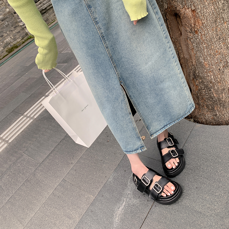 Ventimono增高厚底罗马凉鞋女夏季新款时尚露趾皮带扣真皮沙滩鞋