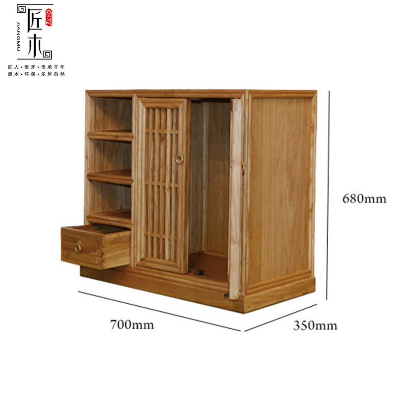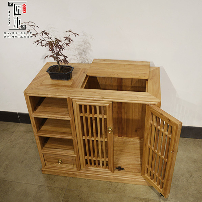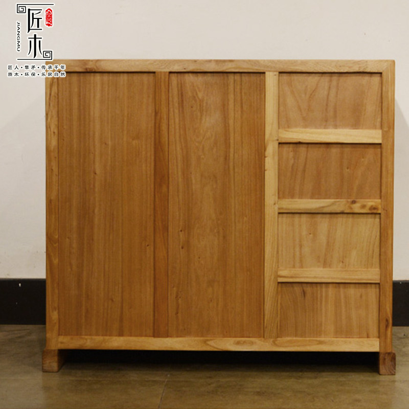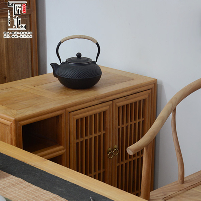 新中式餐边柜黑胡桃木储物柜禅意实木茶水柜榆木矮柜落地收纳柜