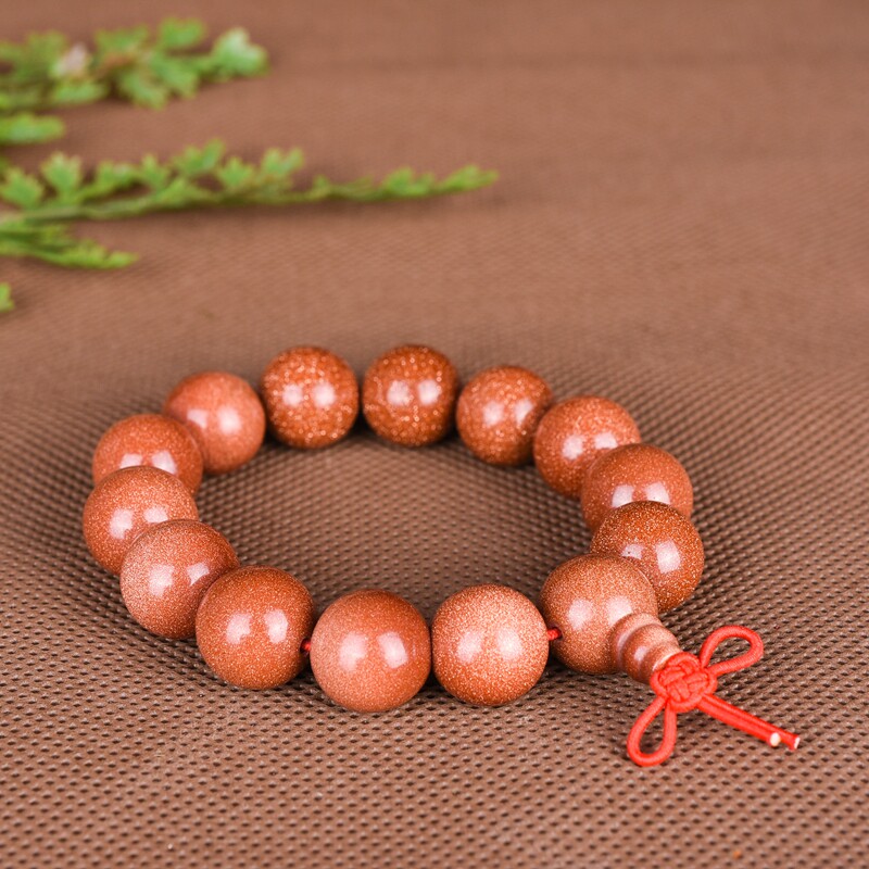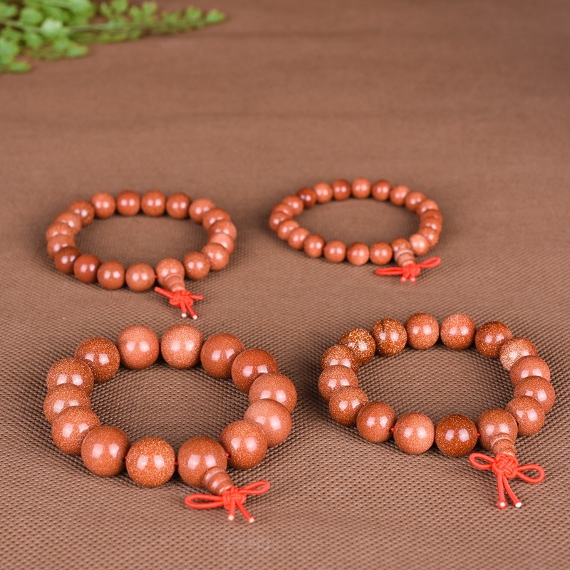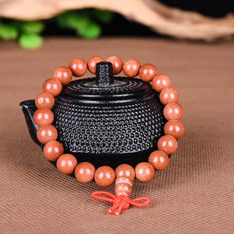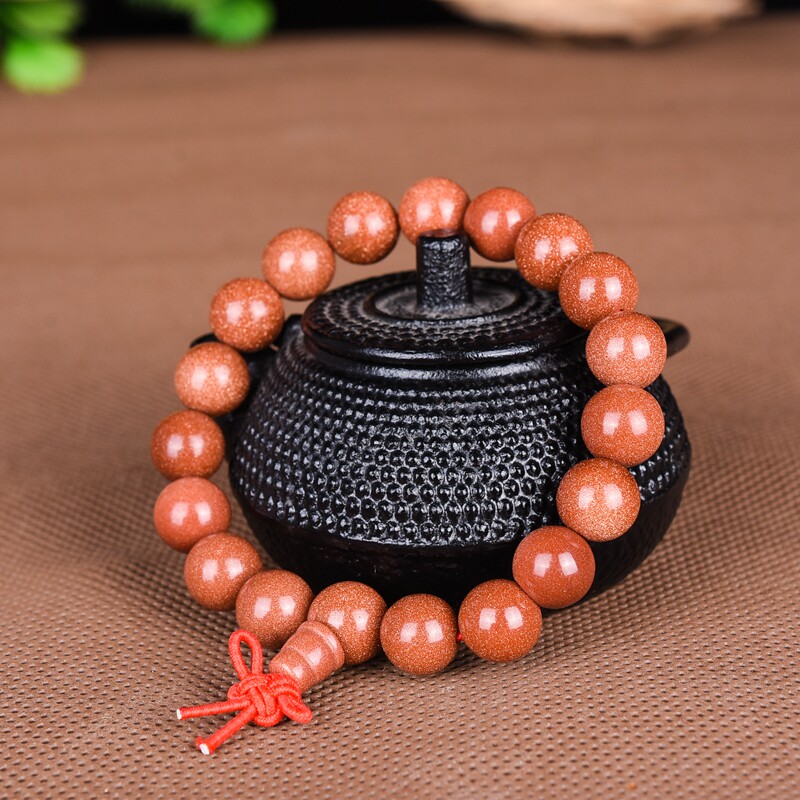 金沙石手链男女款金砂石佛珠手串情侣款单圈转运水晶饰品首饰