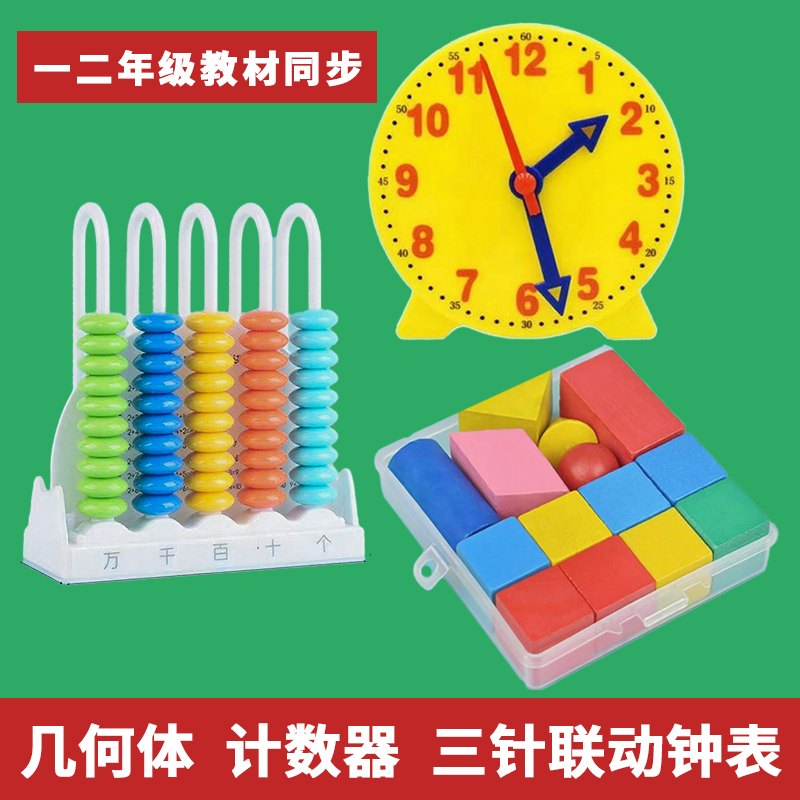 一年级数学教具立体几何图形方形数数小棒套装小学钟表模型计算架