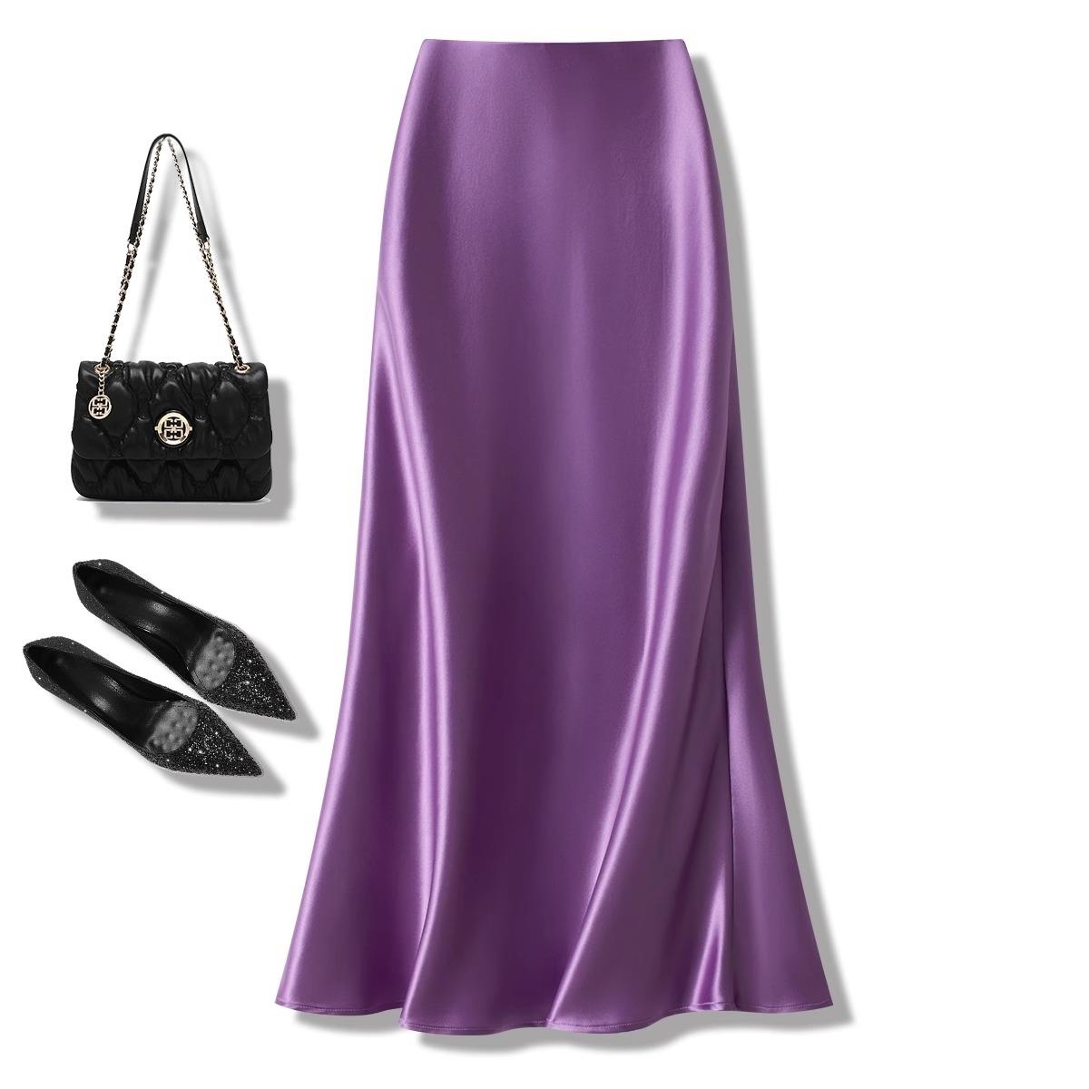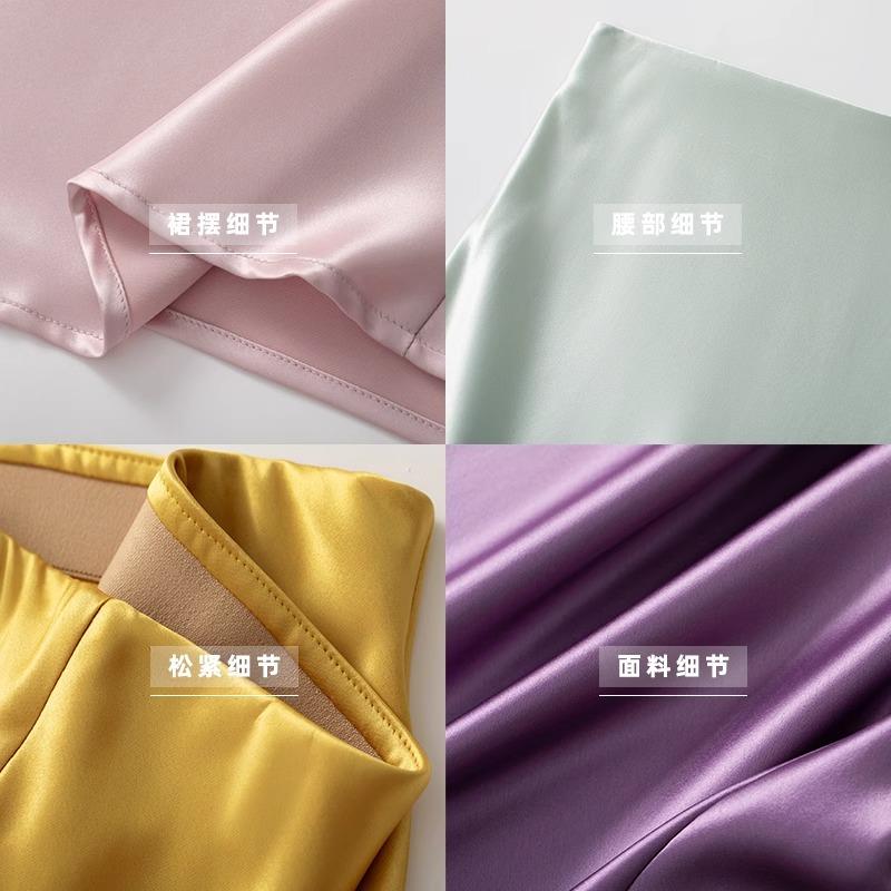 法式醋酸缎面鱼尾半身裙女夏季新款胖mm高腰显瘦垂感a字包臀长裙