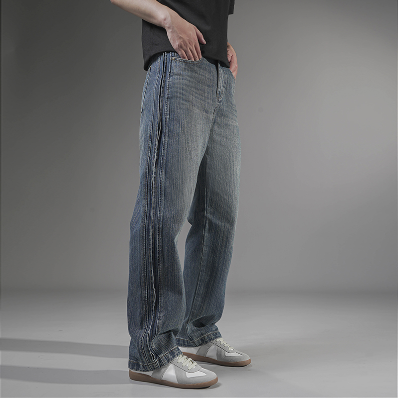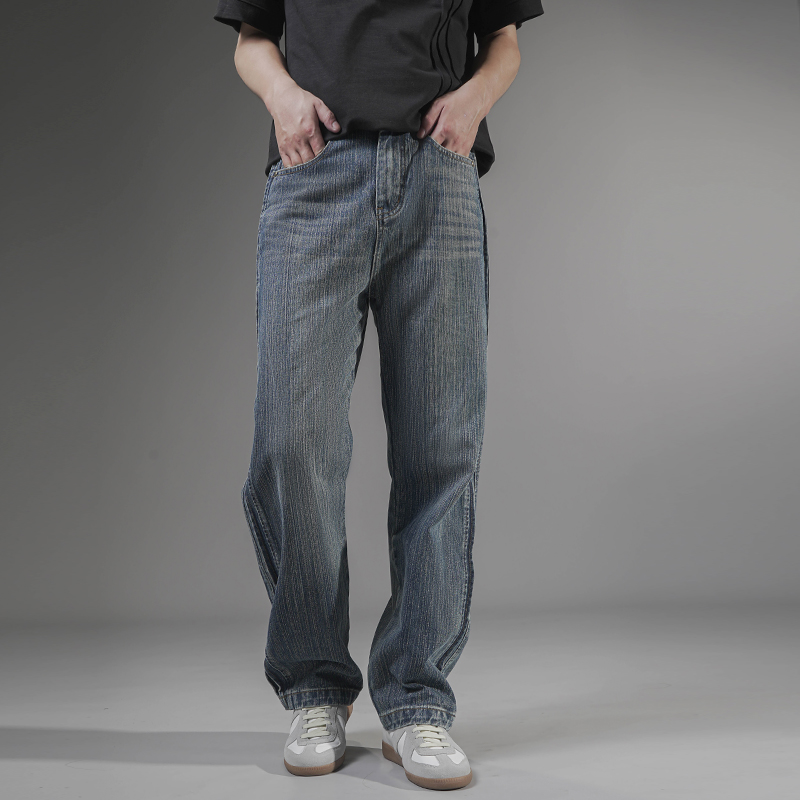 欧风高街水洗竹节纹理牛仔裤男款秋季新款潮牌休闲舒适直筒阔腿裤
