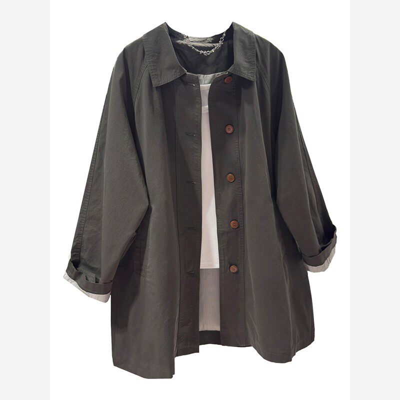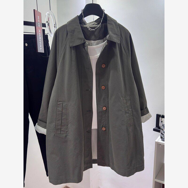 高级感灰色风衣外套女中长款2025春秋新款韩系休闲宽松超好看上衣