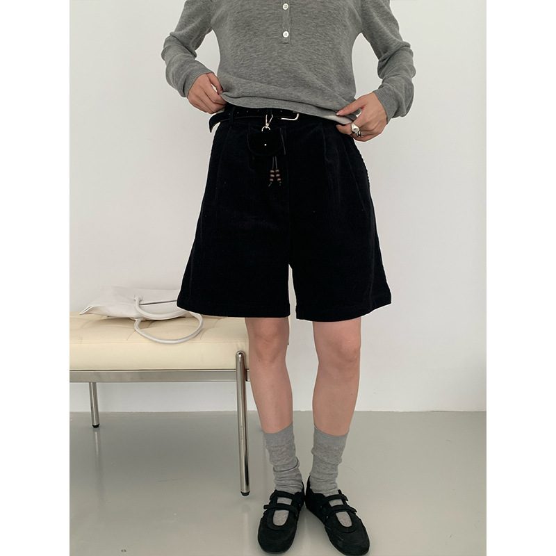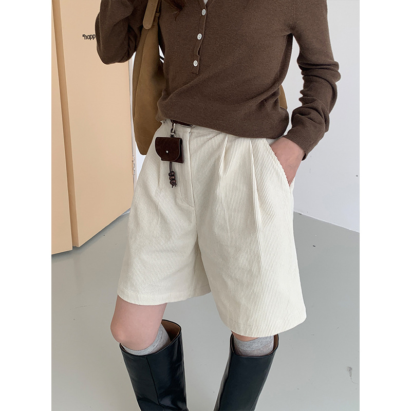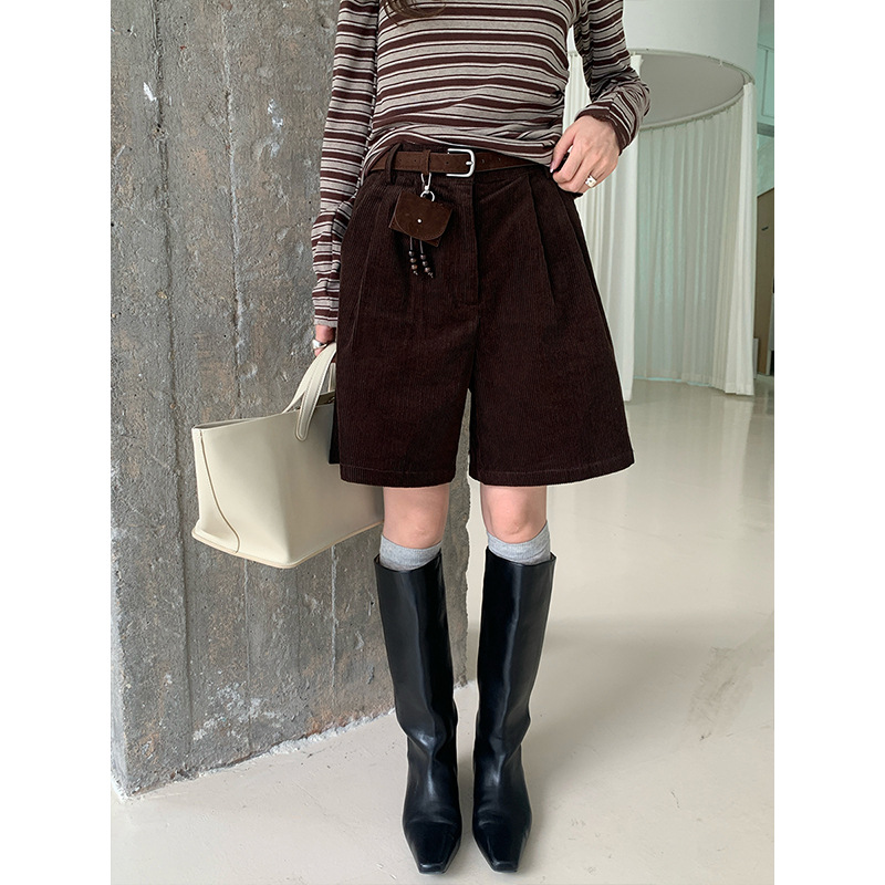 THE MIND灯芯绒休闲短裤2025秋冬韩版简约百搭阔腿三分裤子T5678Q