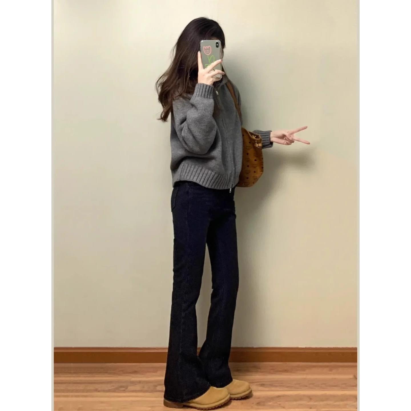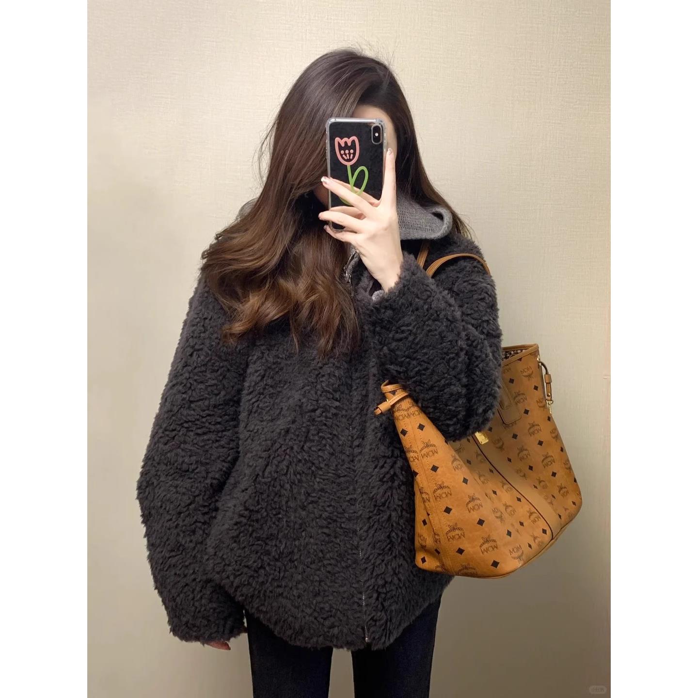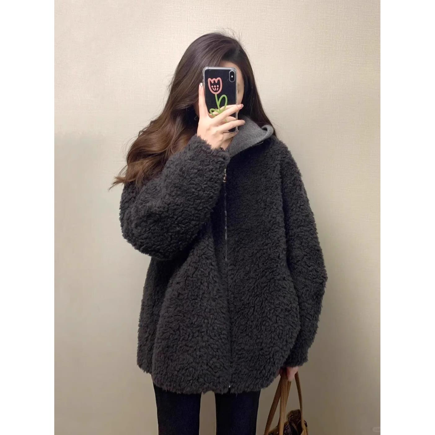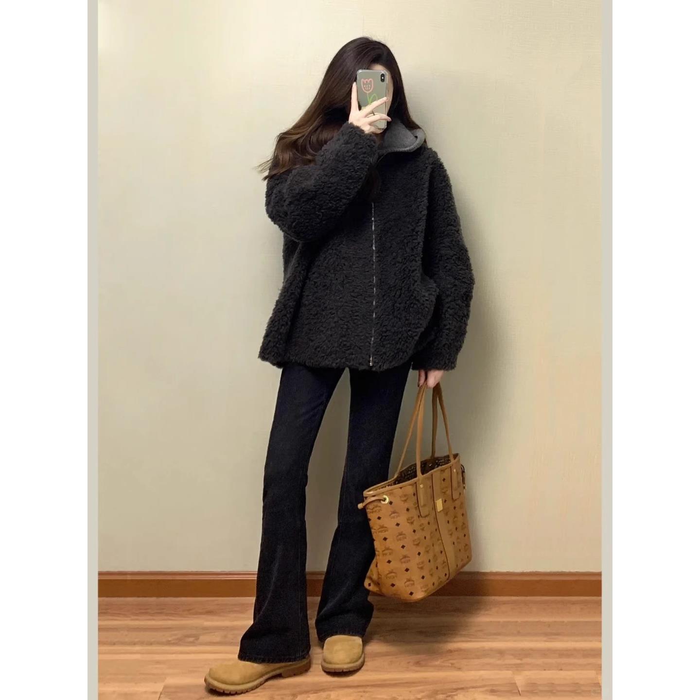 冬装搭配一整大码胖mm羊羔毛外套连帽毛衣牛仔裤子韩系三件套装女