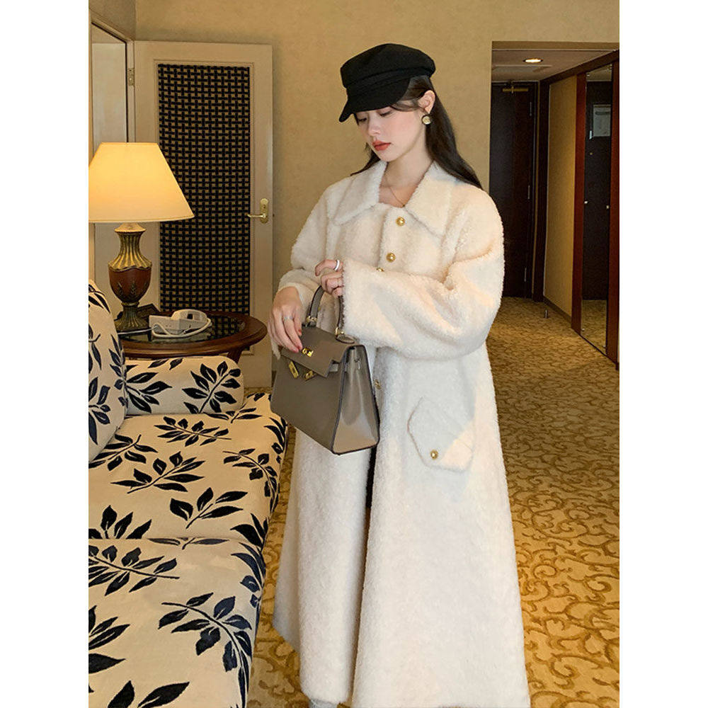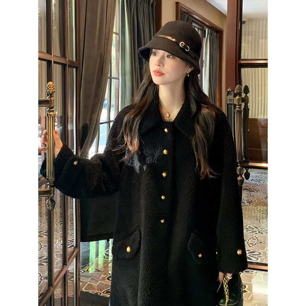 羊羔毛皮毛一体夹棉圈圈毛外套2024冬季新款大衣女中长款大衣外套