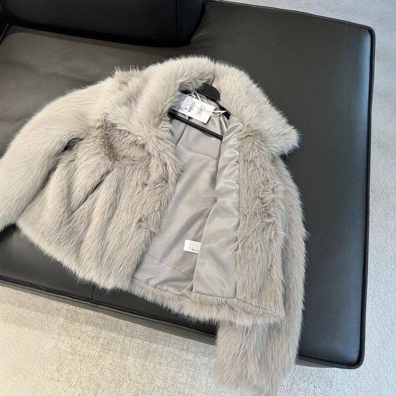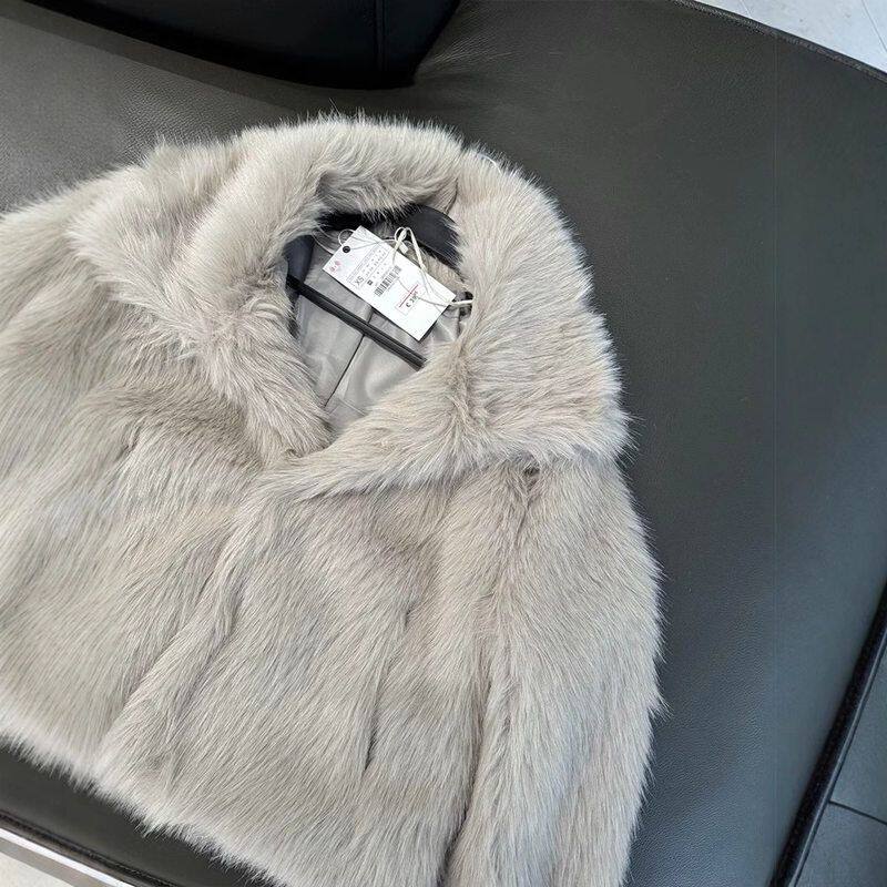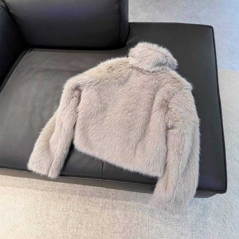 秋冬新品女装时尚仿皮草效果长袖立领毛绒保暖休闲口袋短外套
