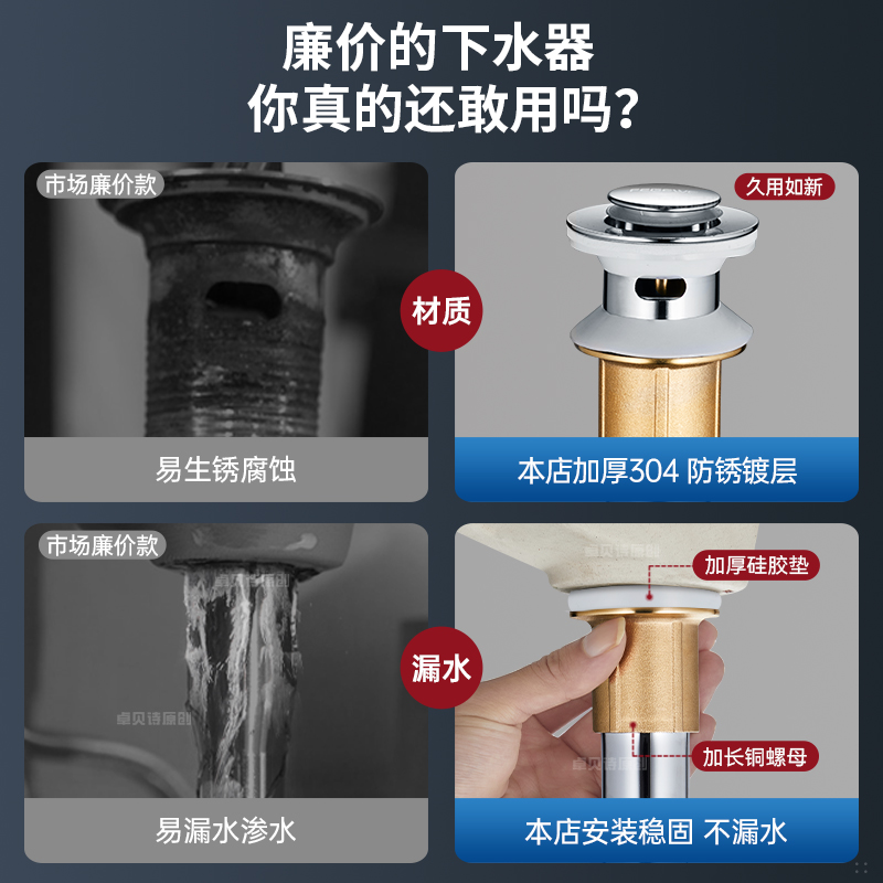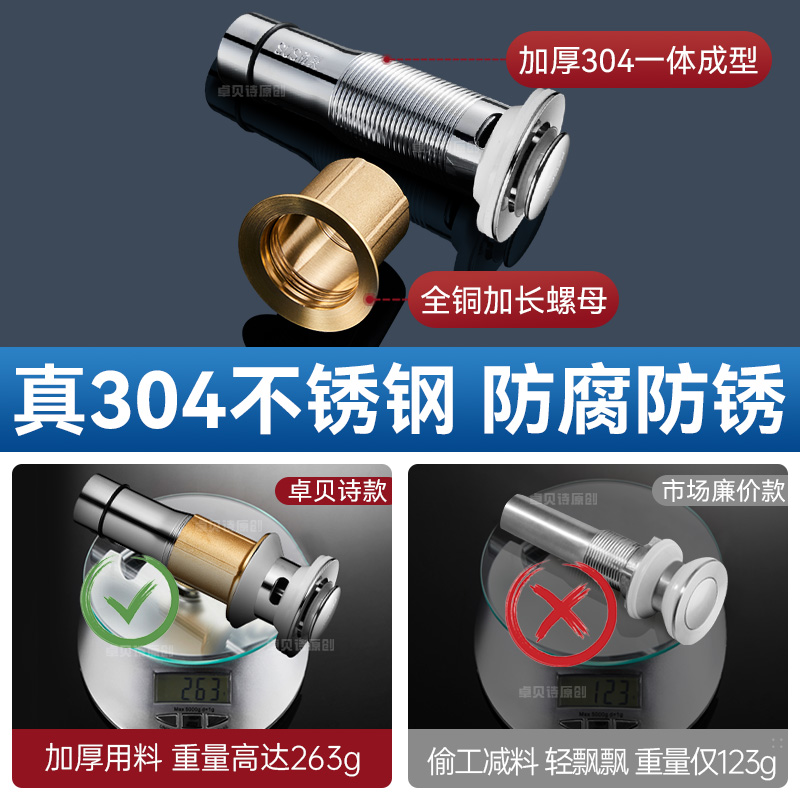 卫生间洗手盆304下水器套装面盆台盆洗手池洗脸盆下水管通用全套